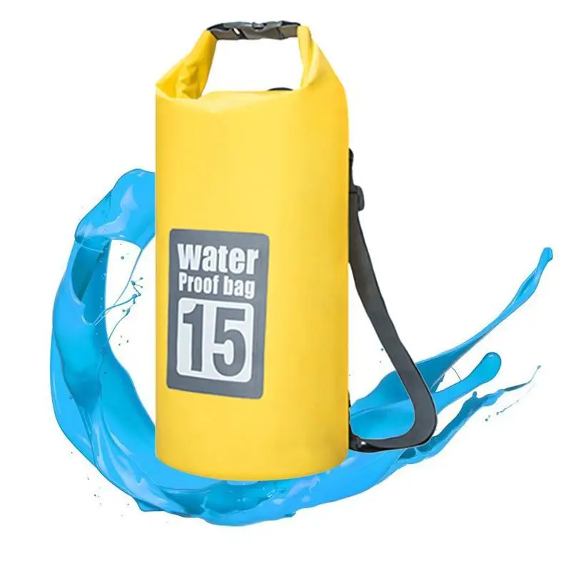 Waterproof Dry Bag PVC Roll Top Waterproof Backpack Gear Bag for Drifting Boating Rafting Swimming and Camping -Yellow (15L)