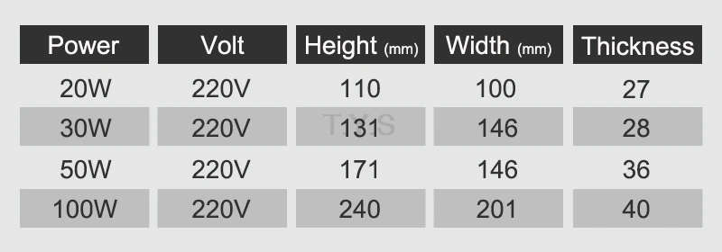 Watts: 20W 30W 50W 100W