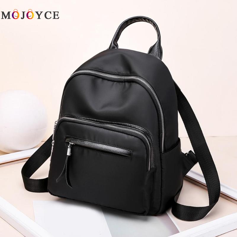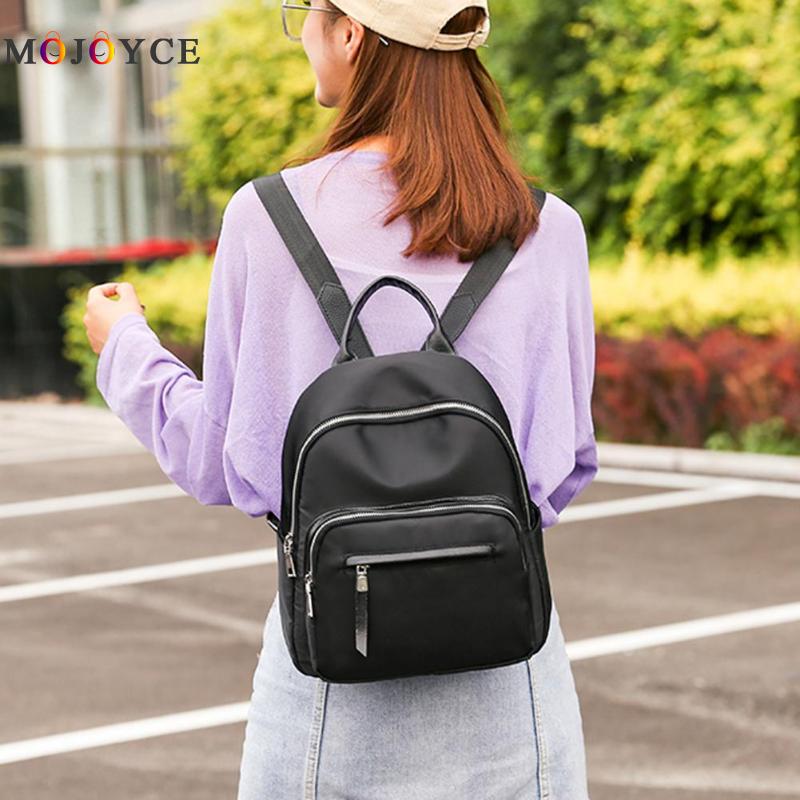 Waterproof Nylon Women Pure Color Zipper Backpacks Teenage Girl School Travel Handbags Rucksack