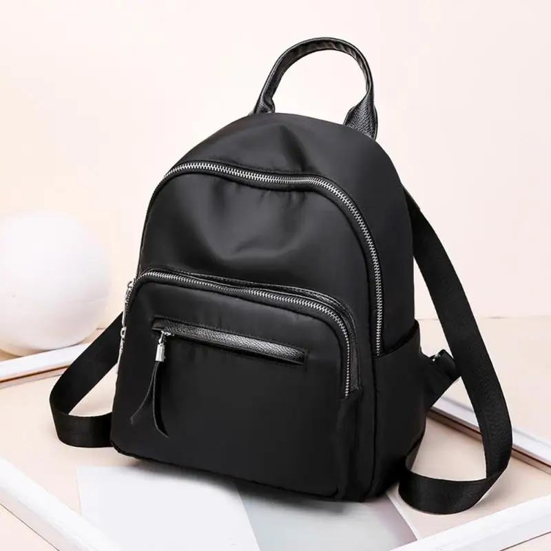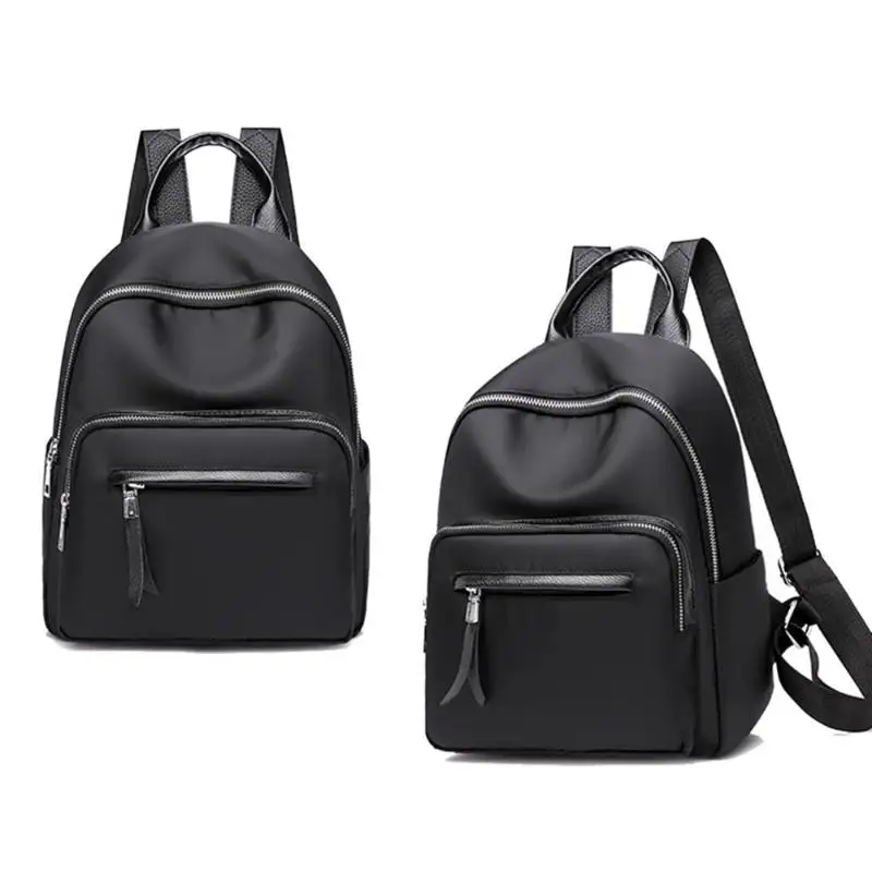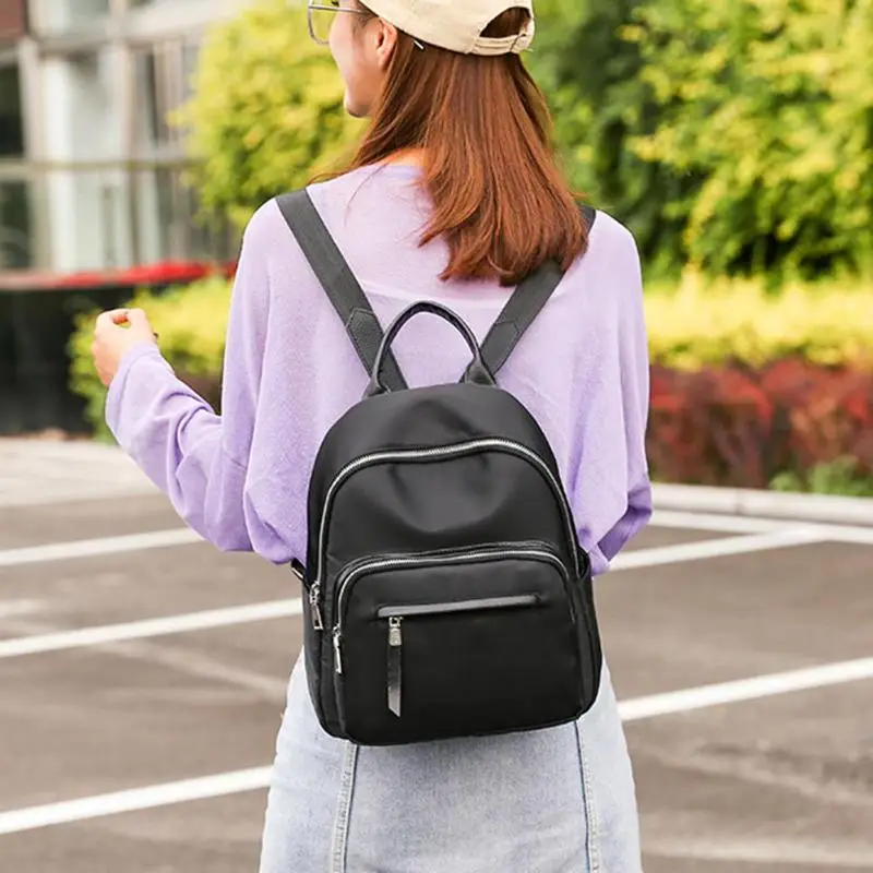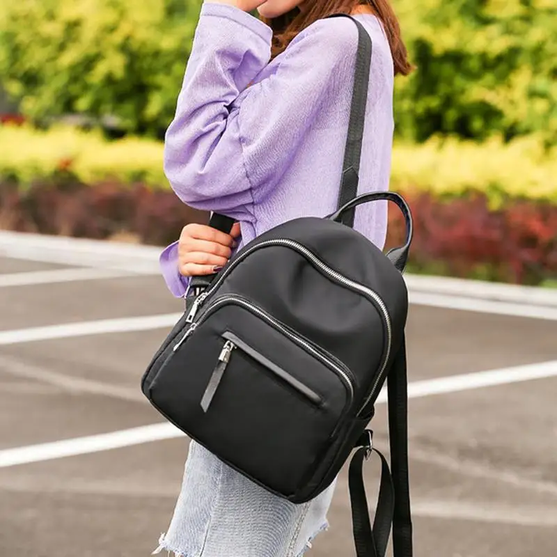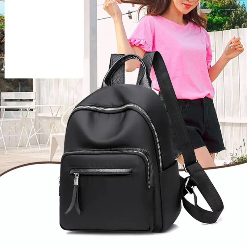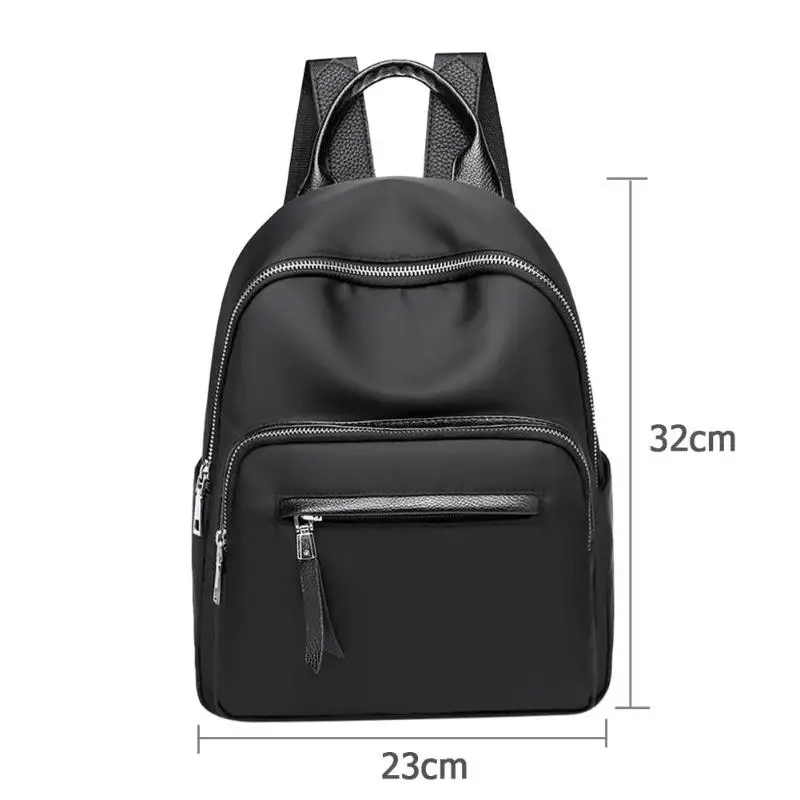 Waterproof Nylon Women Pure Color Zipper Backpacks Teenage Girl School Travel Handbags Rucksack