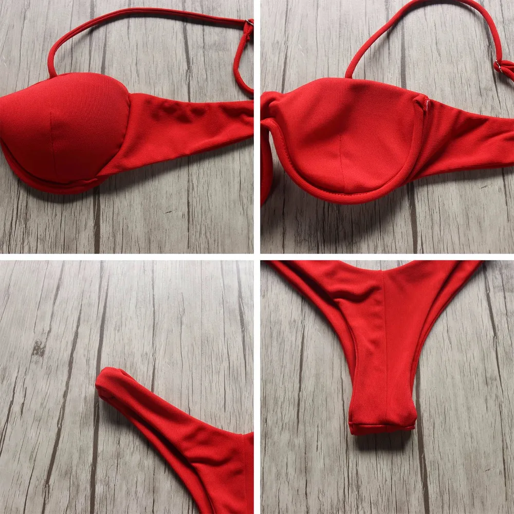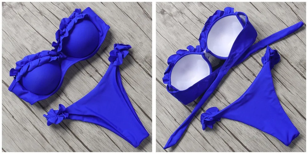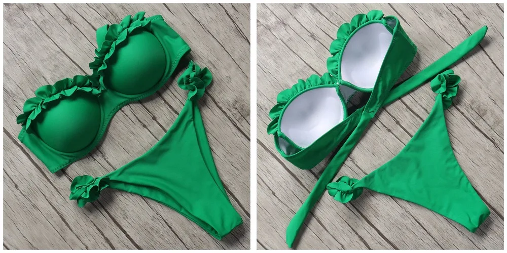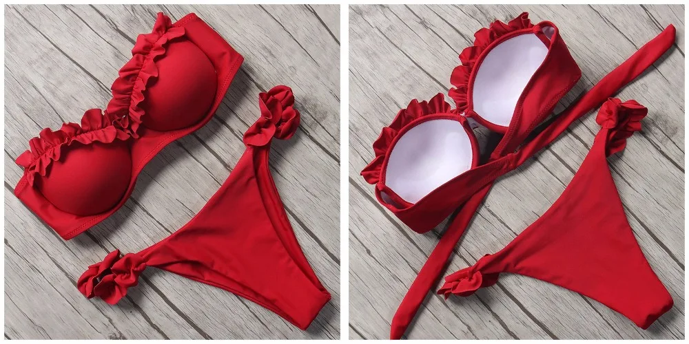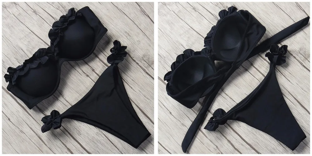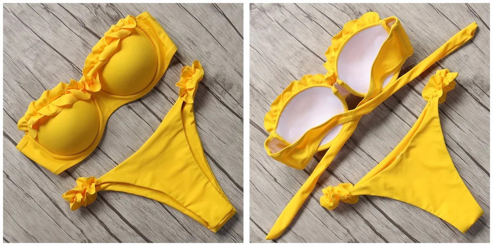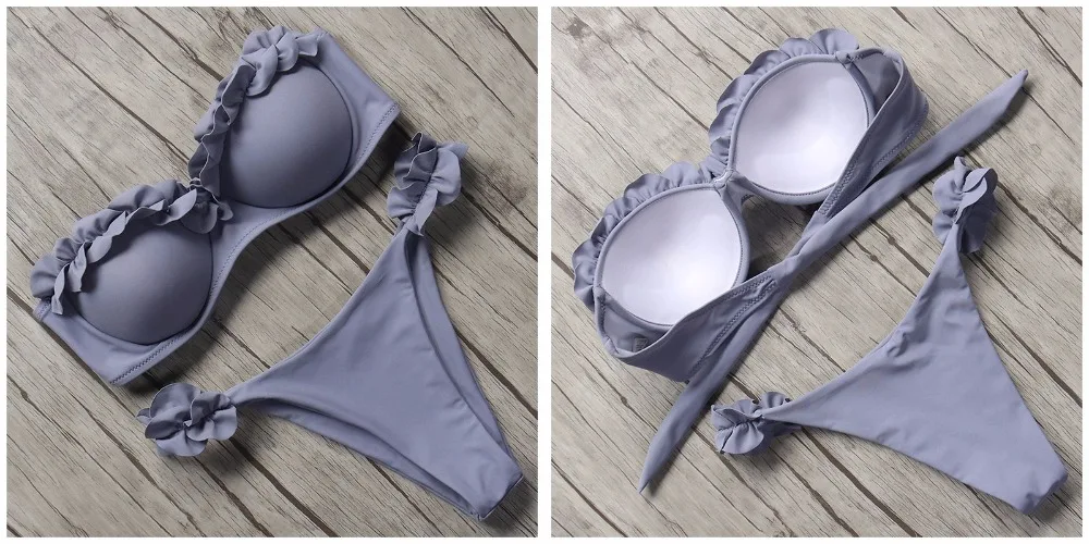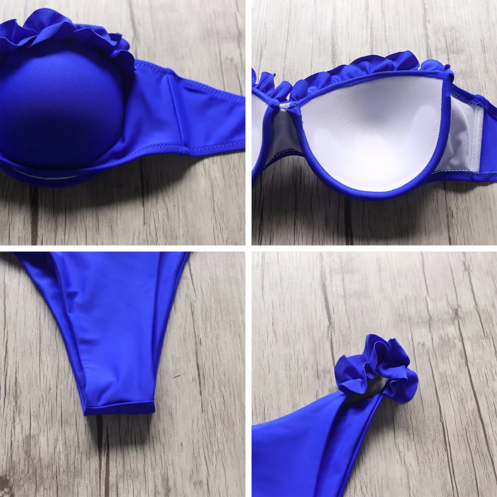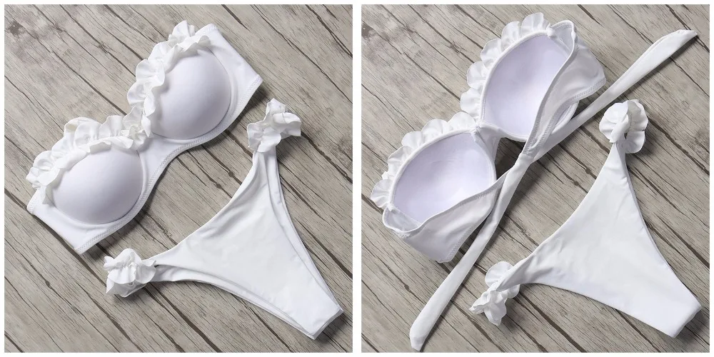 Wave Curling Bikini Set Off Shoulder Bandage Swimwear Solid Women Push up Swimsuit White Bikins Set Biquini Bathing Suit