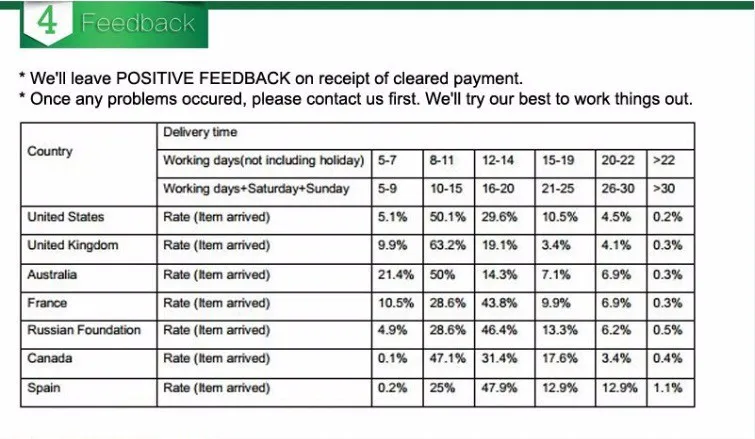 • If you did not receive the product within the guaranteed time( 45 days not including 2-5 day processing) you can request a refund or a reshipment.