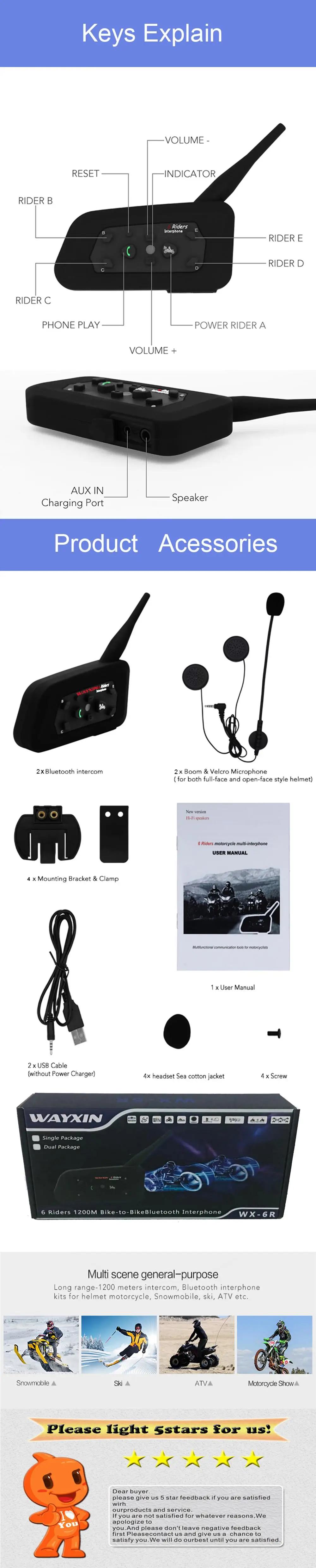 Max talking range: 1200m/3937feet between 2 riders