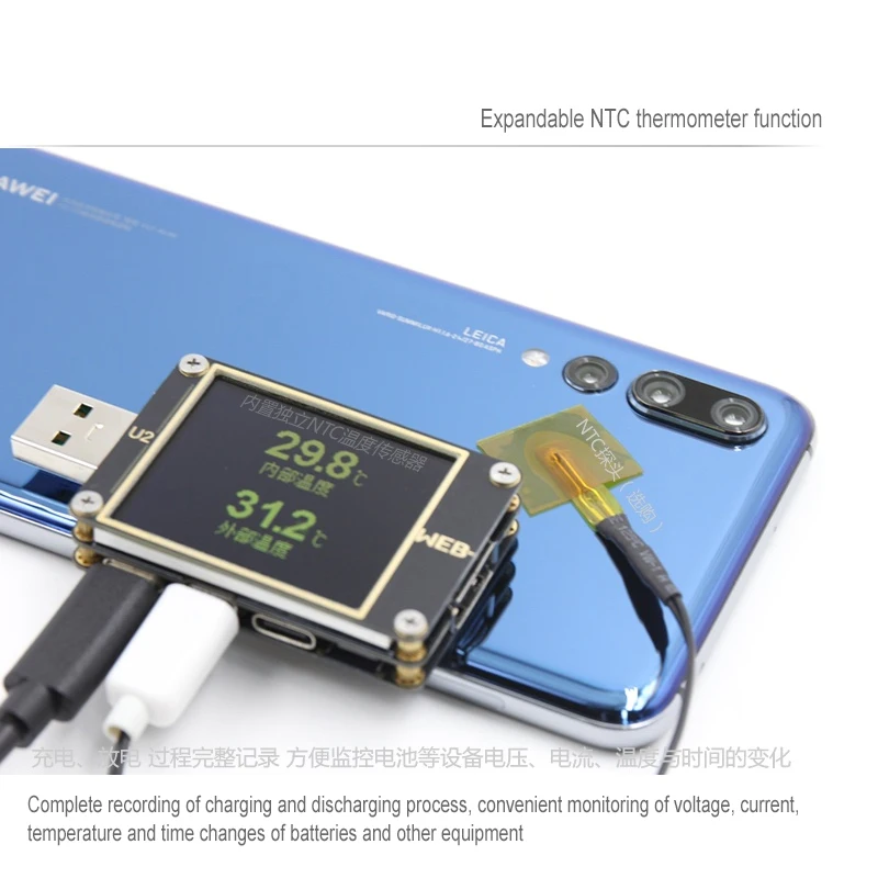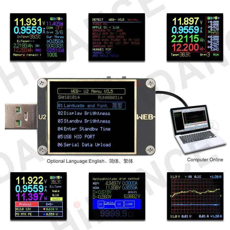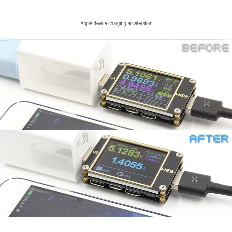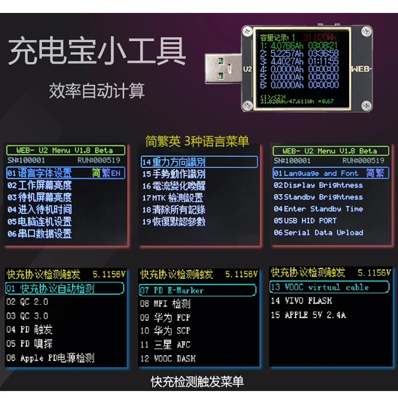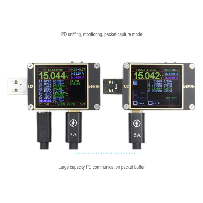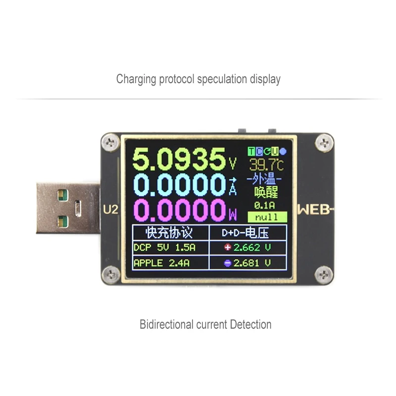 WEB-U2 USB Color Tester Current Voltmeter QC4+ PD3.0 2 PPS quick Charging Protocol Capacity DC meter 1.77 inch HD diplay