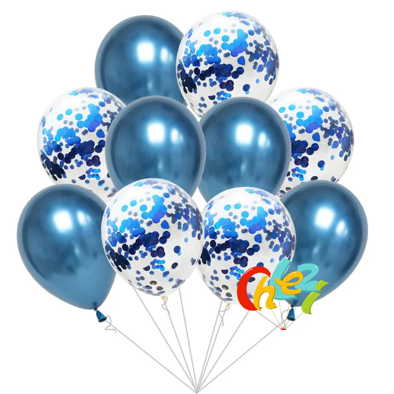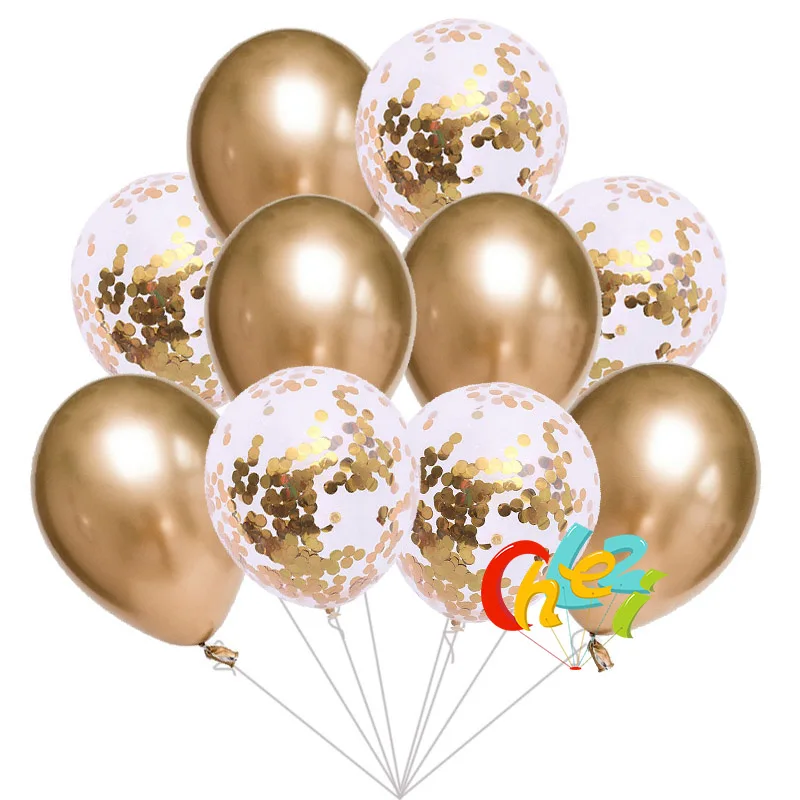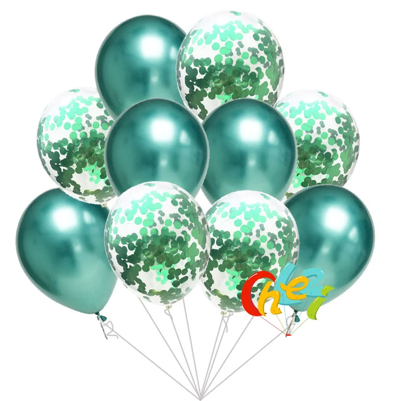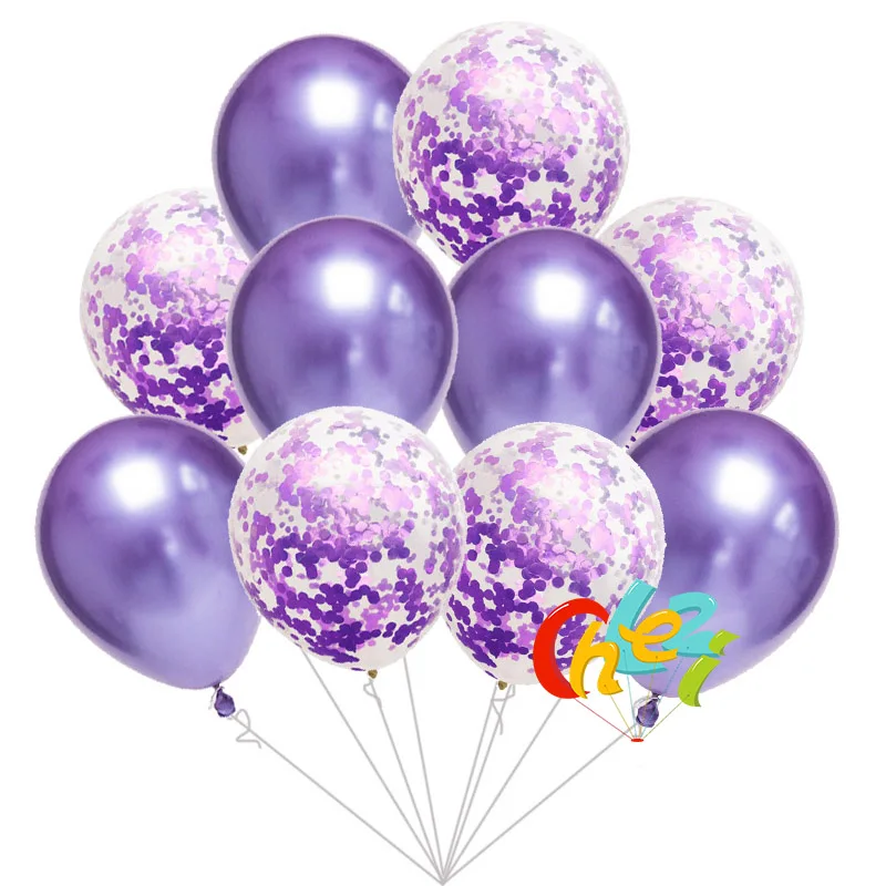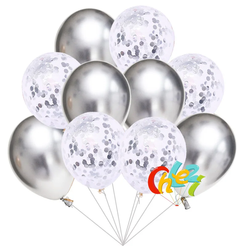 5pcs Chrome Metallic balloons+ 5pcs Paillette Confetti balloon