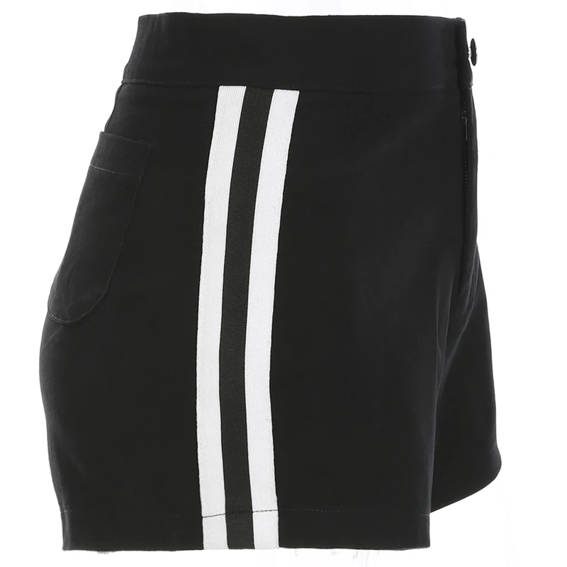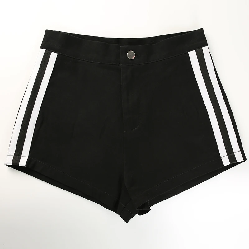Weekeep 2018 Black Side Stripped Shorts Women’s Sexy Skinny Pockets Cotton Shorts Streetwear High Waist Short Feminino