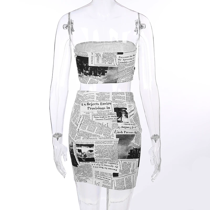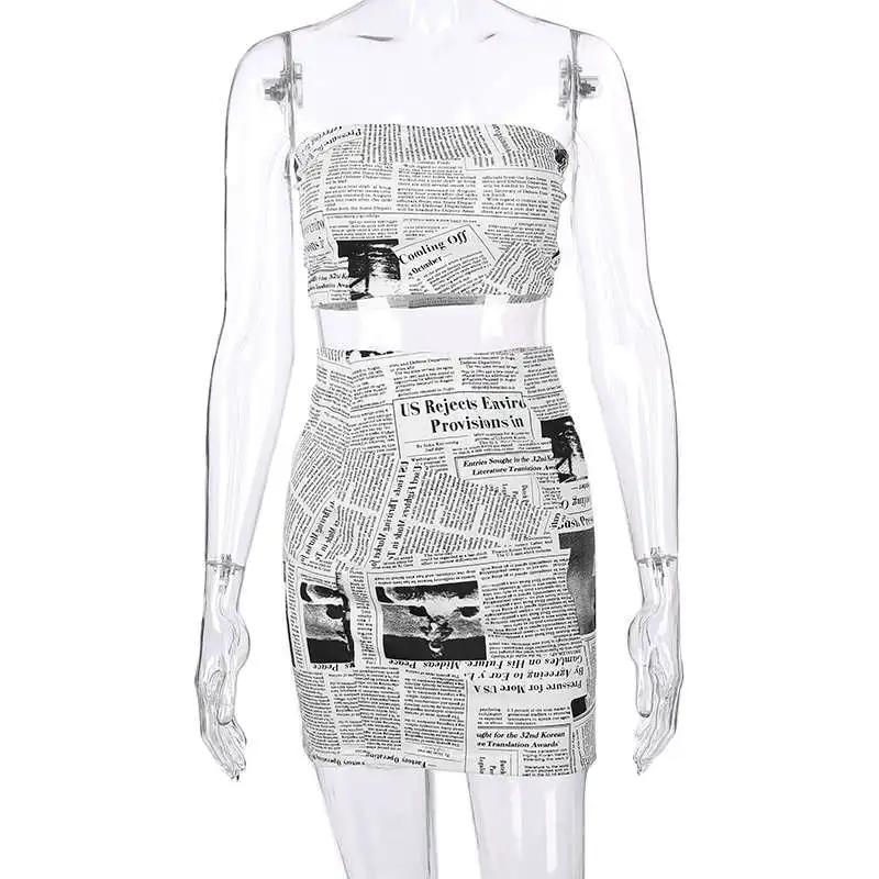 Weekeep Printed Tube Top And Skirt Two Piece Set Women Summer Sexy Bodycon Crop Top And Mini Skirt 2 piece set Womens Tracksuit