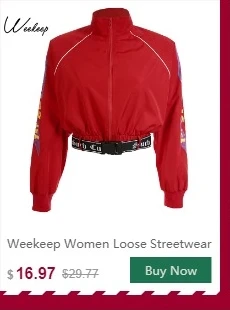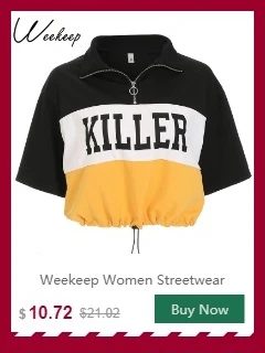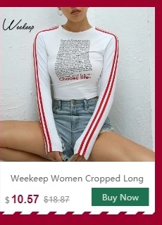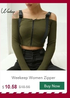 Weekeep Women Zipper Adjustable Strap t shirt Fashion Streetwear Long Sleeve Crop Top Sexy Cropped Slash Neck t-shirt Tops