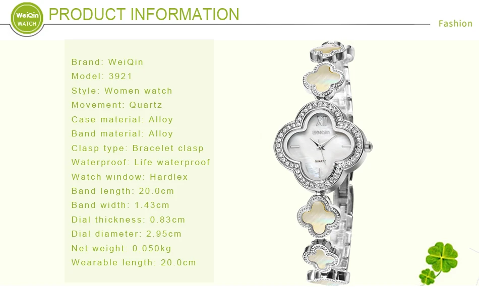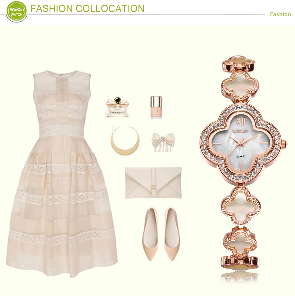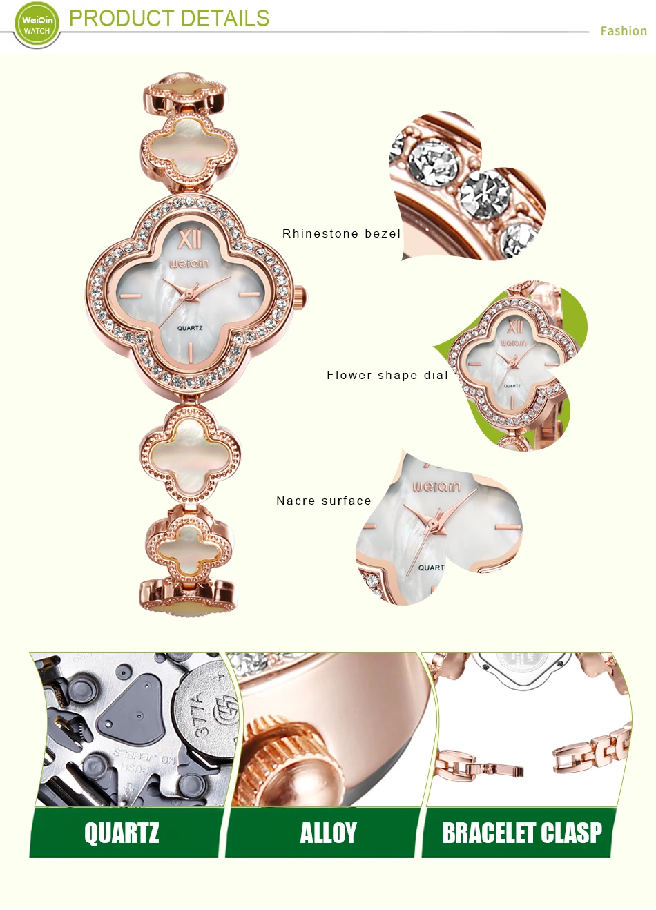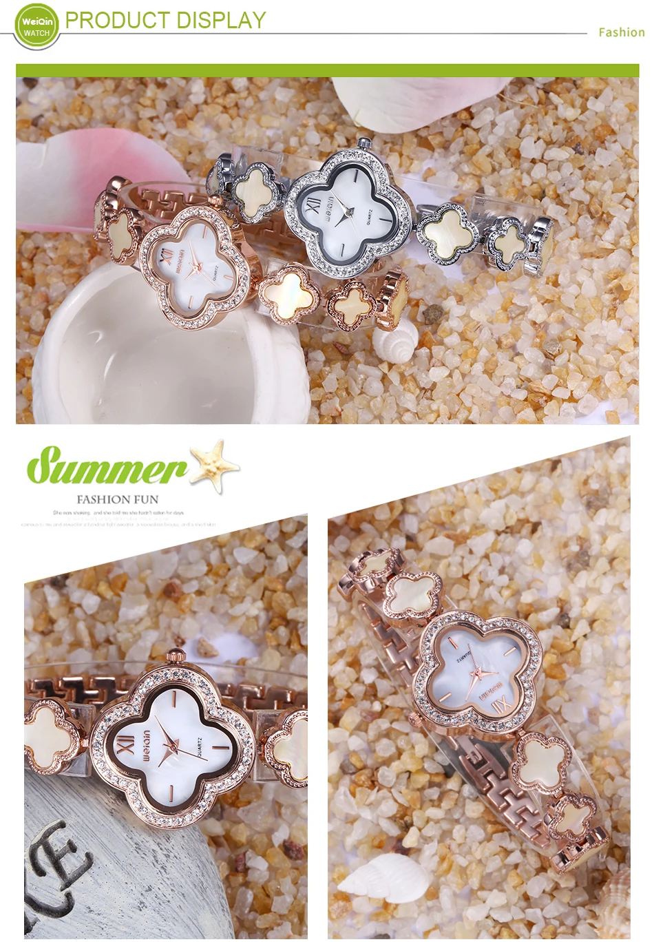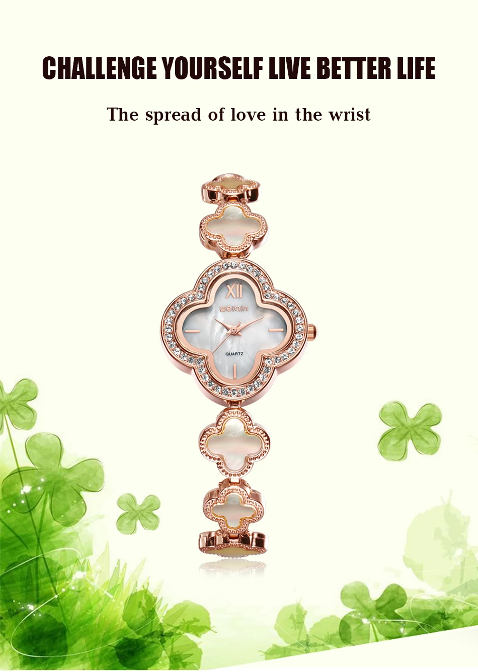 Wei Qin simple fashion watch female diamond bracelet watch petal four-leaf clover shaped quartz watch