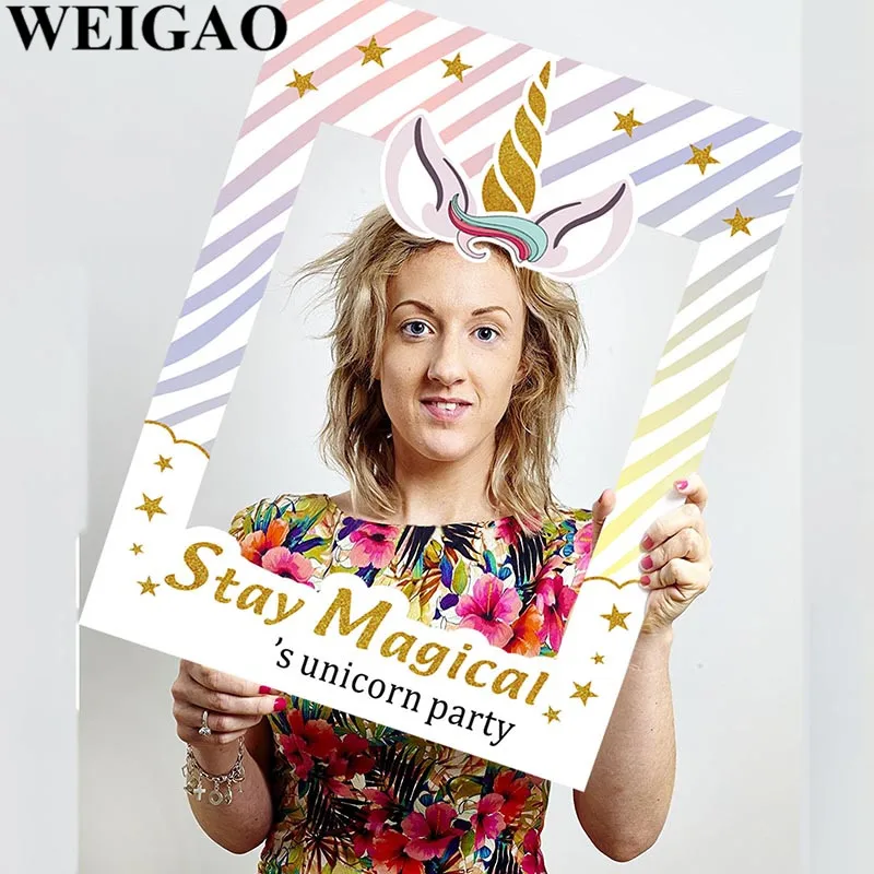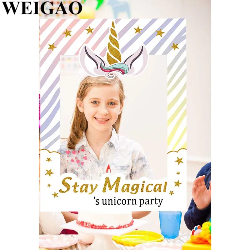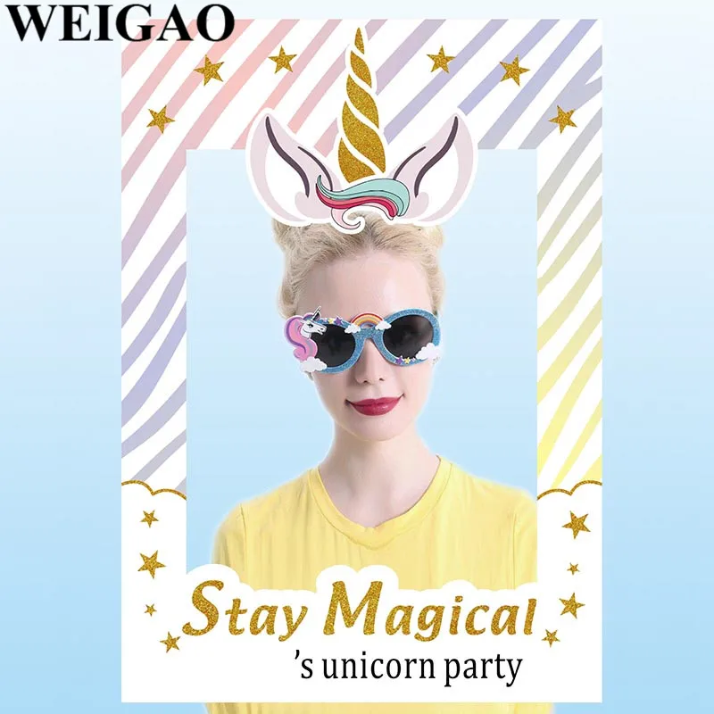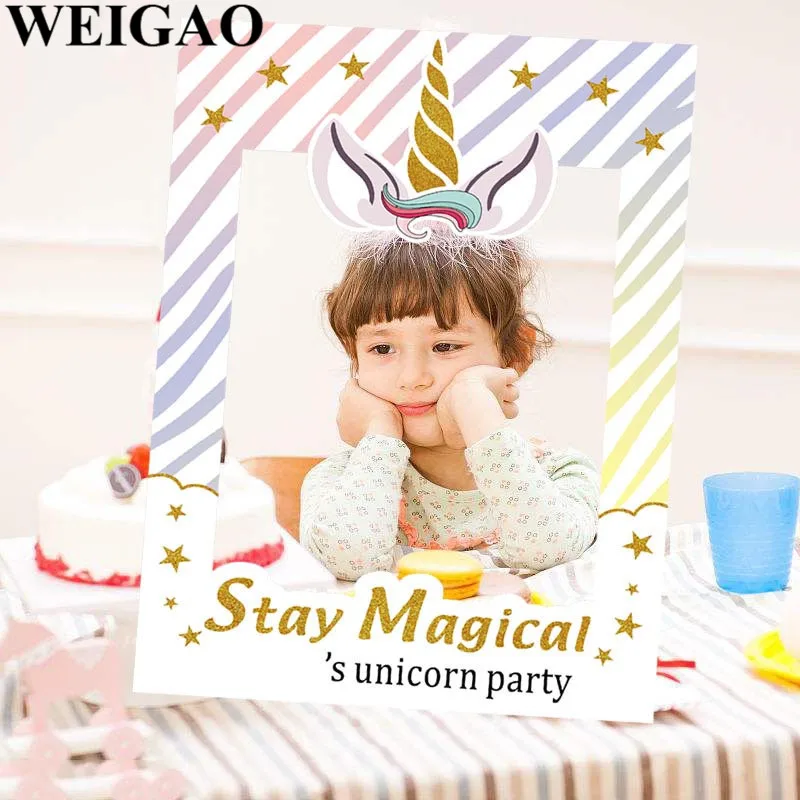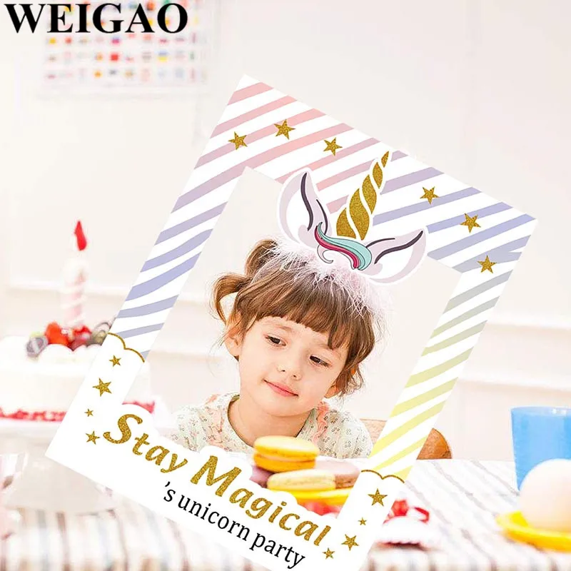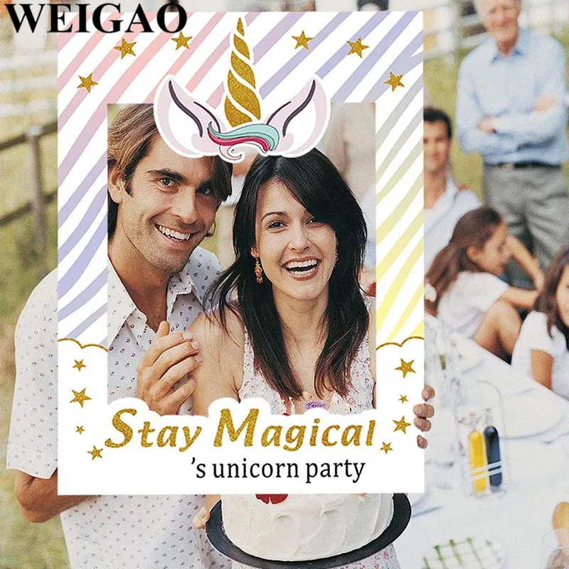 WEIGAO Birthday Party Photobooth Props Stay Magical Photo Frame For Kids Birthday Party Unicorn Photo Booth Props Party Supplies