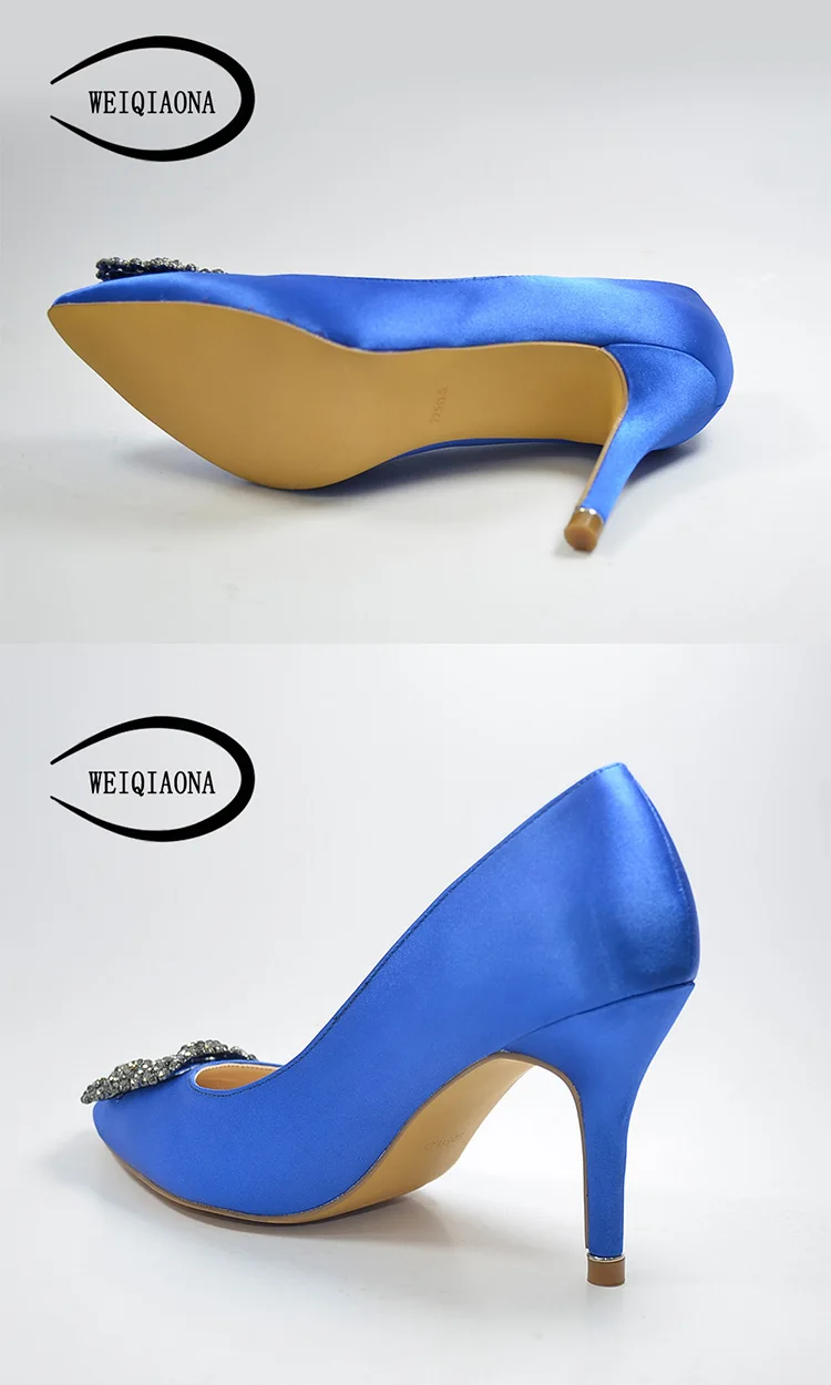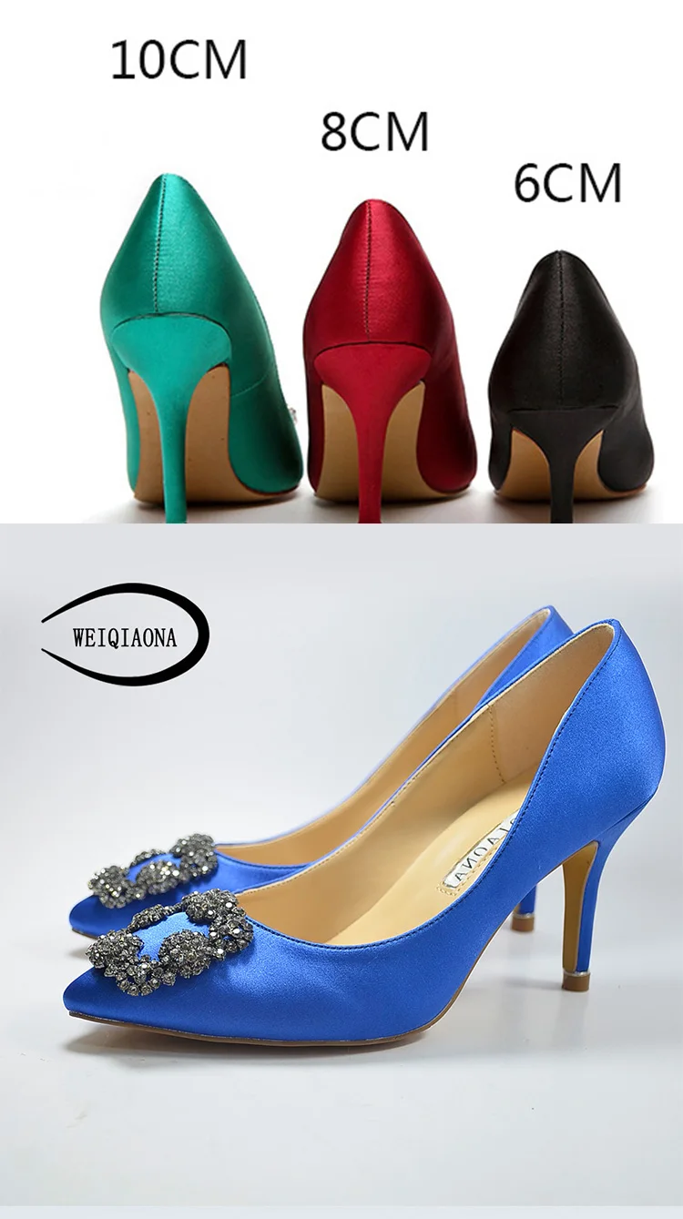 WEIQIAONA 2018 Fashion Brand shoes Sexy Women Pumps High Heels Shoes Elegant Buckle Rhinestone Heeled Thin Pointed Dress Shoes
