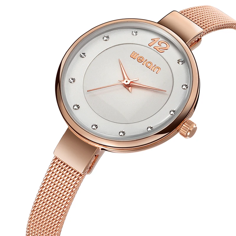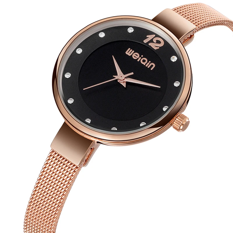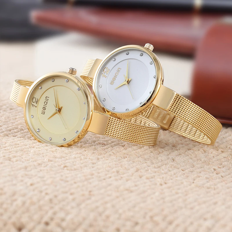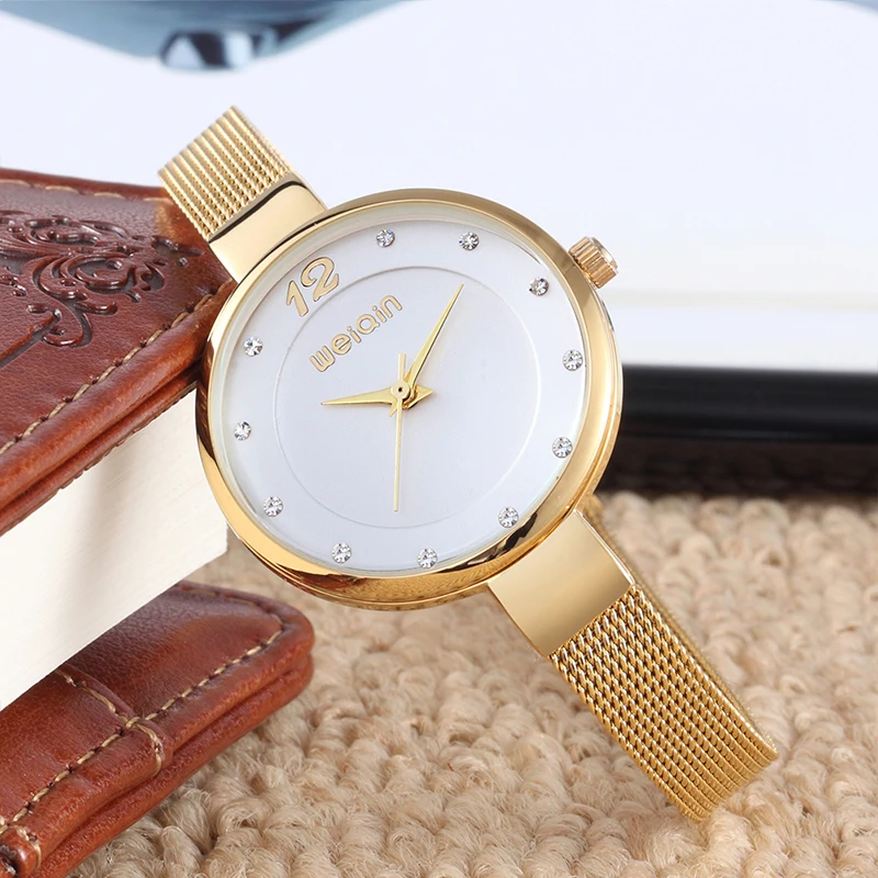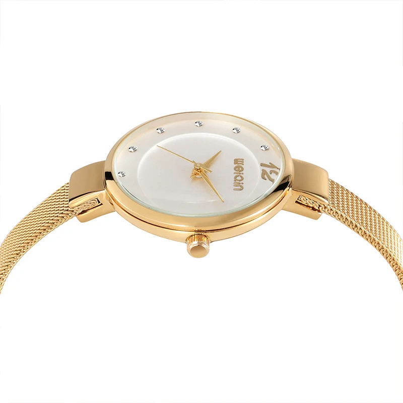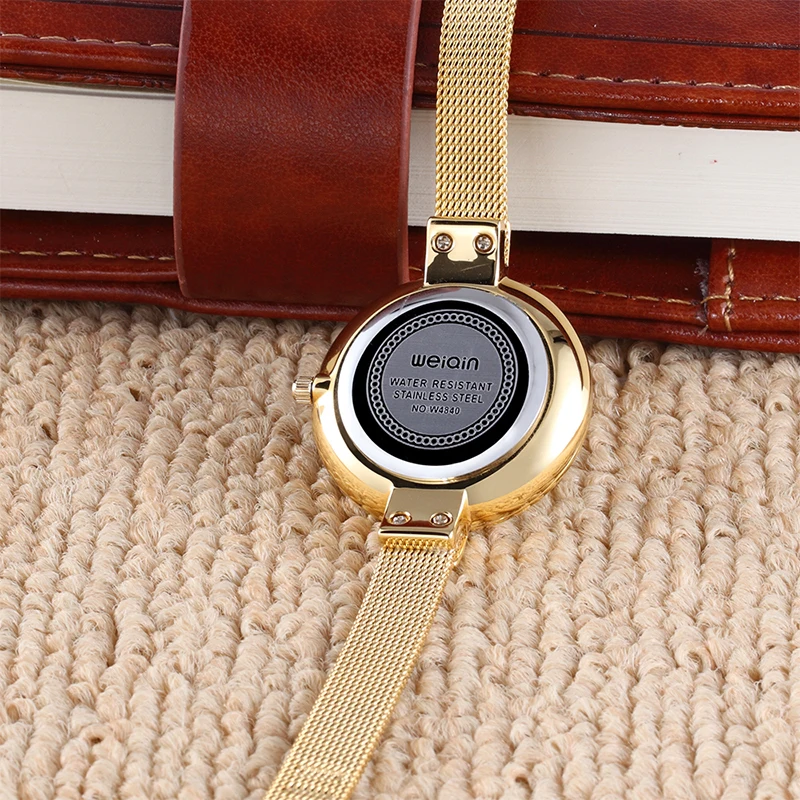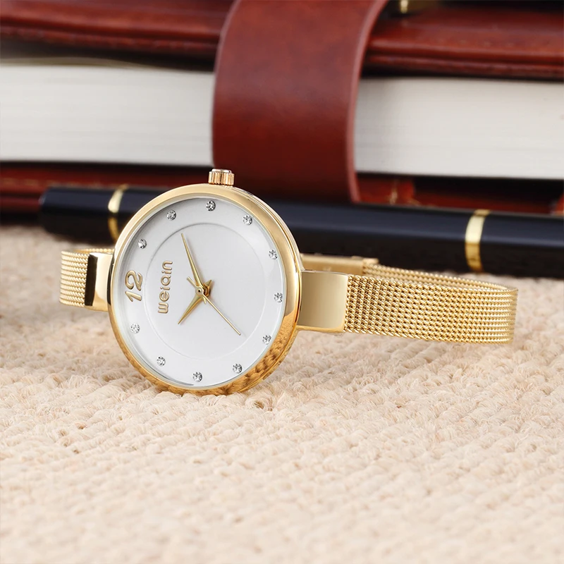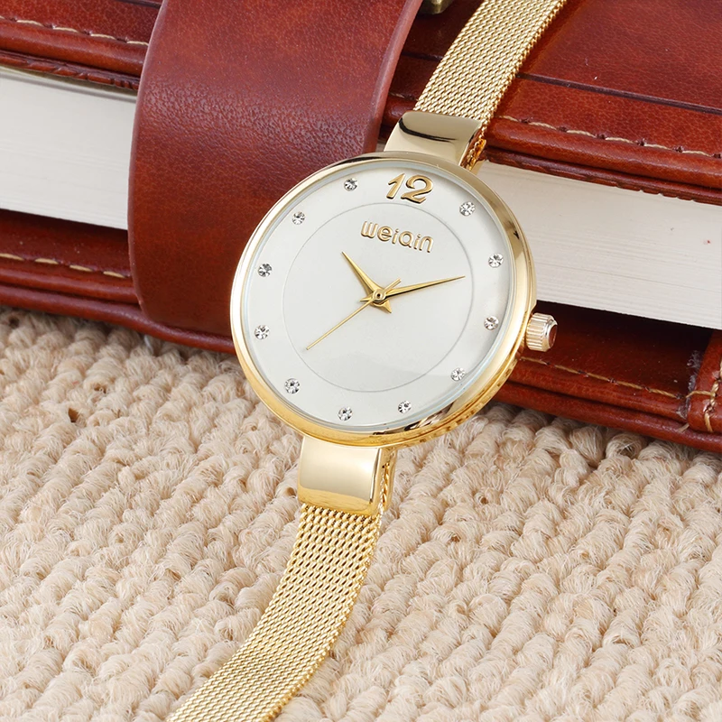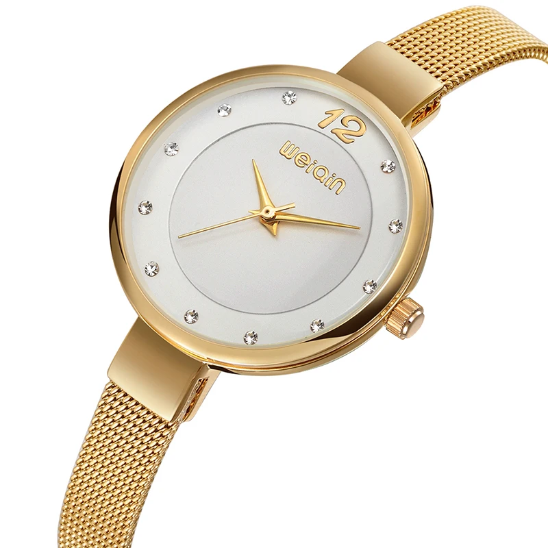 WEIQIN Mini Rhinestone Women Bracelet Watches Mesh Steel Fine Strap Ladies Quartz Clock Woman Dress Gold Watch relogio feminino