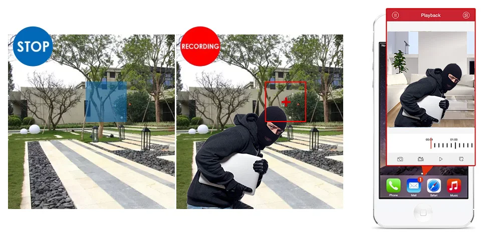 The camera built with PIR sensor, it can detect human body temperature. When PIR detect alarm is triggered, it sends message to App instantly. Together with motion detection it provides double security for your home.