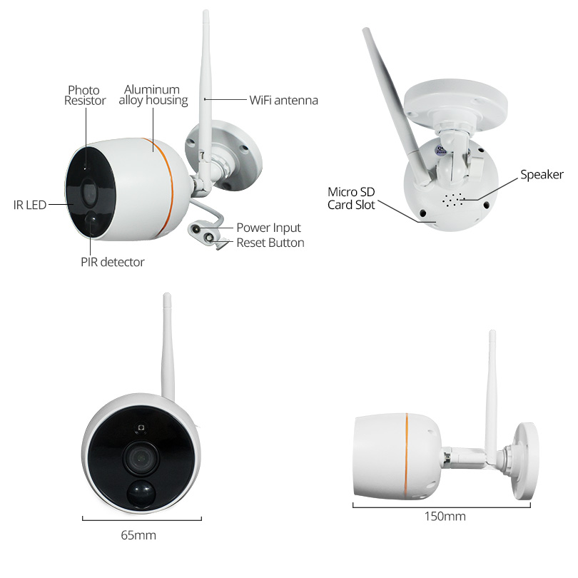 Camera housing is aluminum alloy seal with water resistant rubber ring, dust proof and waterproof. No fear of rainy weather.