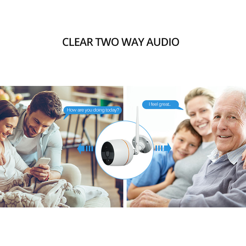 Camera is built with microphone and speaker. You can talk to your kids via your smartphone remotely whenever you want.