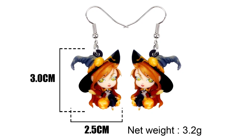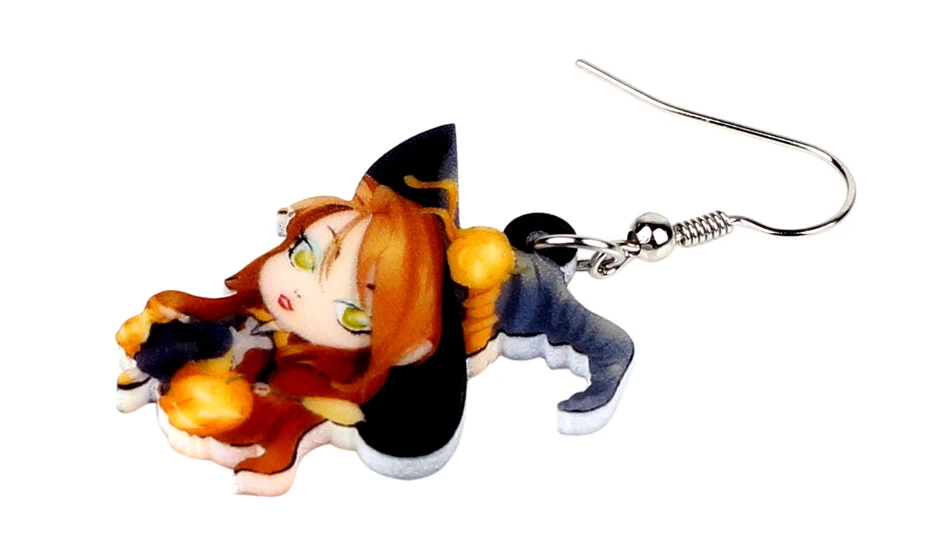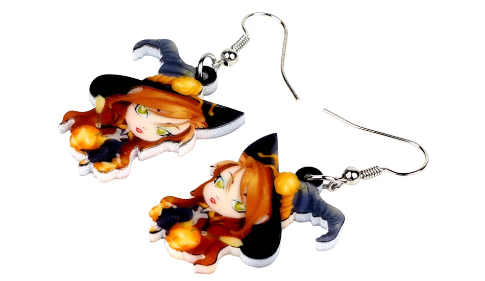 WEVENI Acrylic Halloween Anime Magical Witch Earrings Drop Dangle Fashion Cute Jewelry For Women Girls Teens Wholesale Accessory