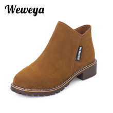 Weweya Fashion Women’s Boots Round Toe Square Heel Women Boots Winter Boots Shoes Woman