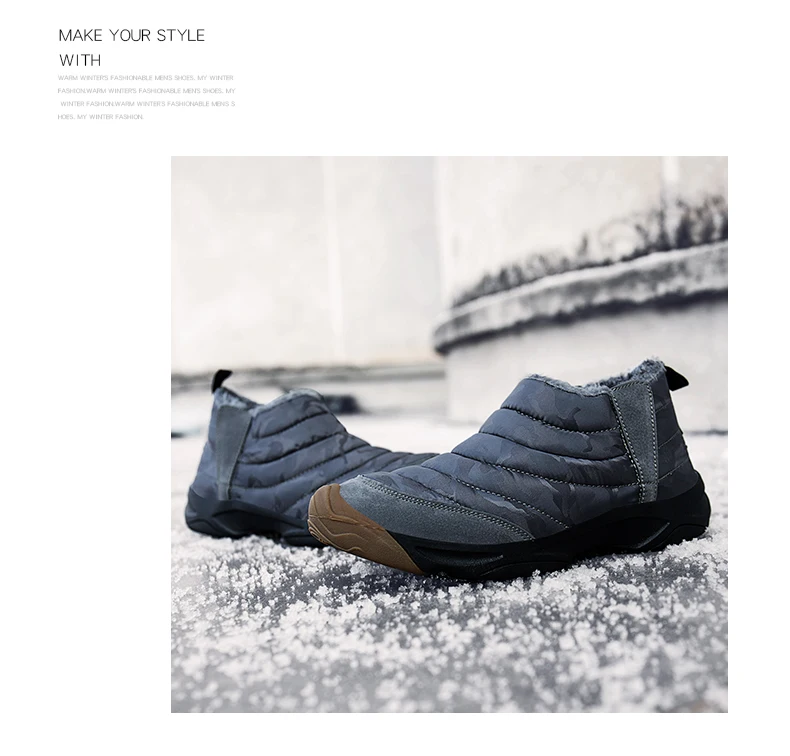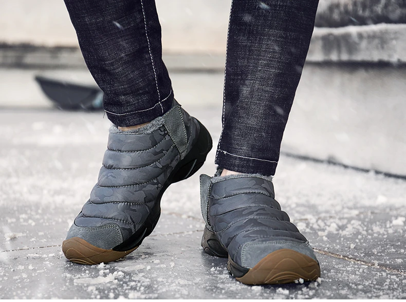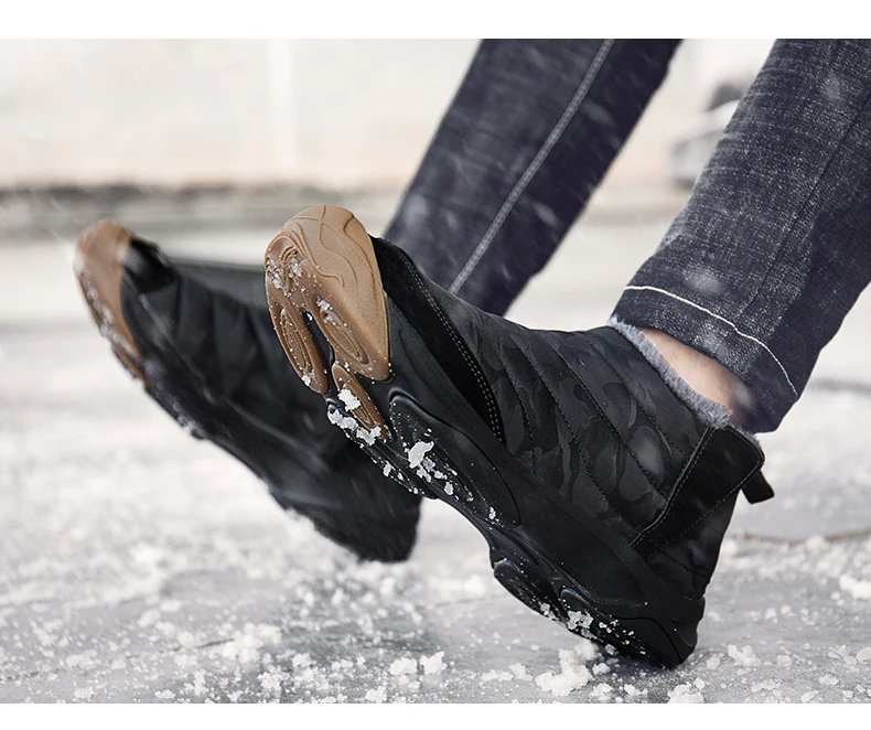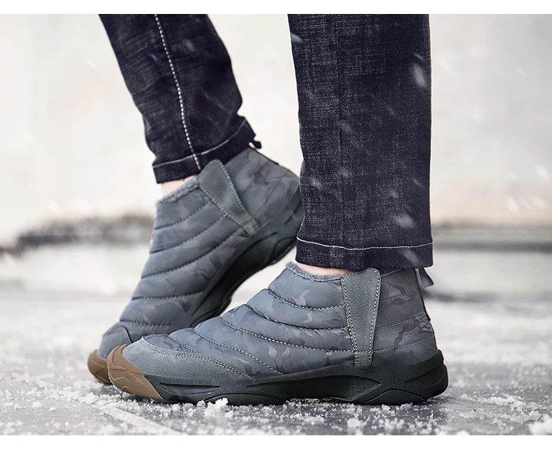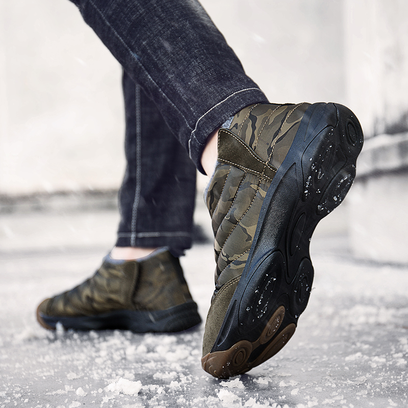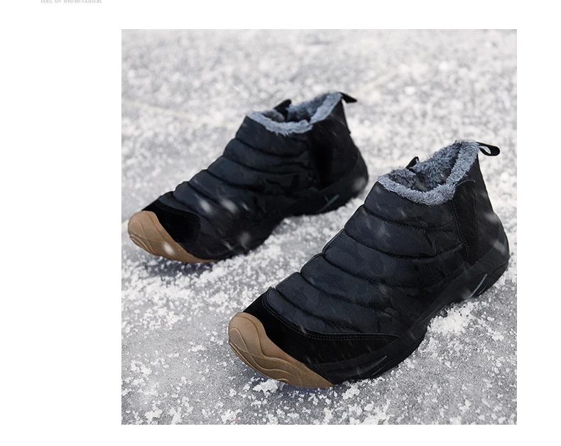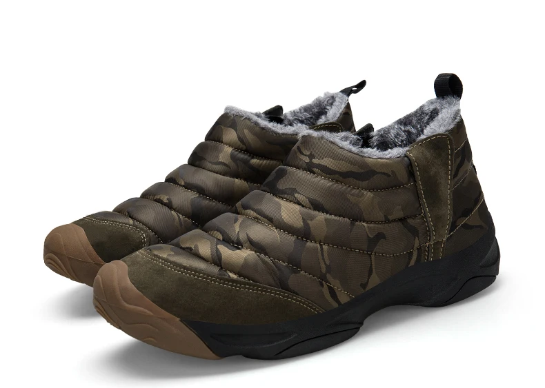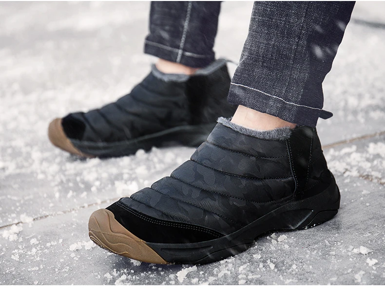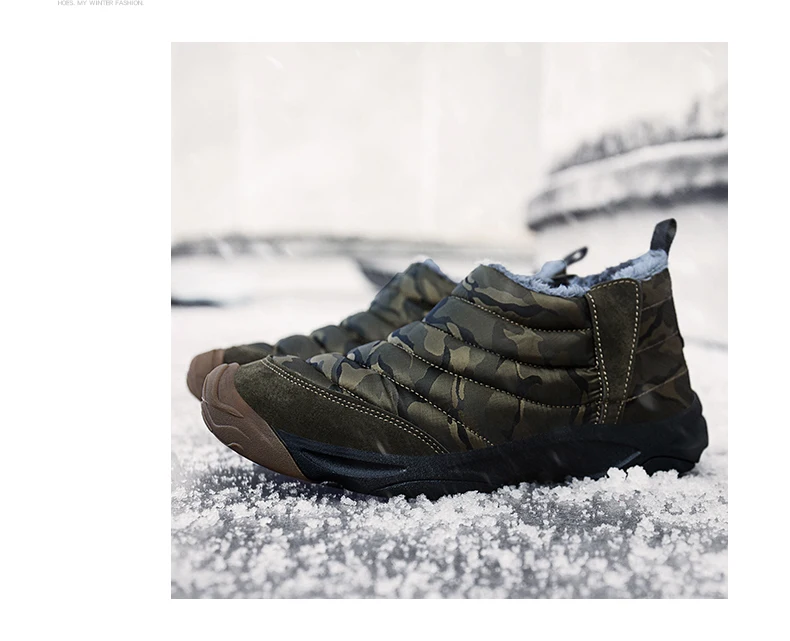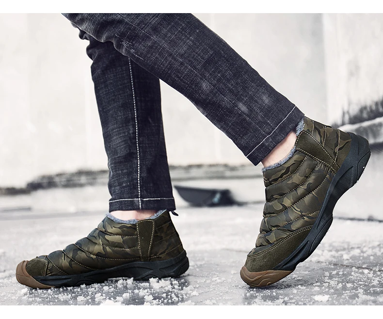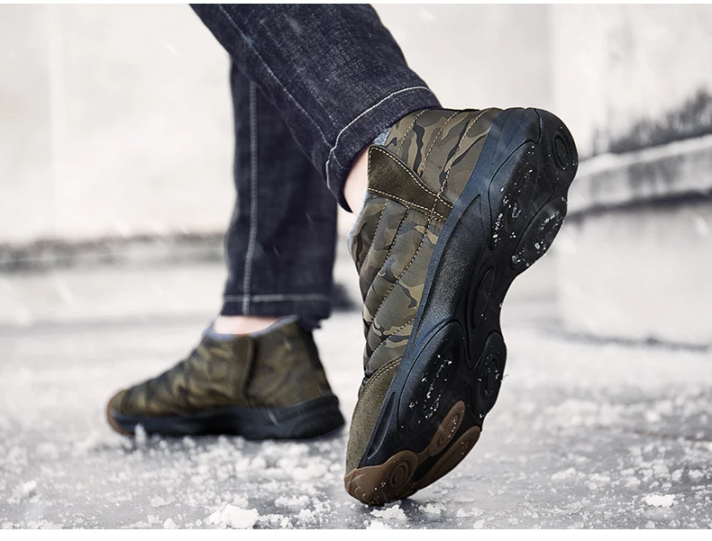 Weweya Oxford Round Toe Military Boots Men Camouflage Warm Plush Snow Boots Slip On Elastic Band Winter Boot Botas Hombre 36-46