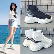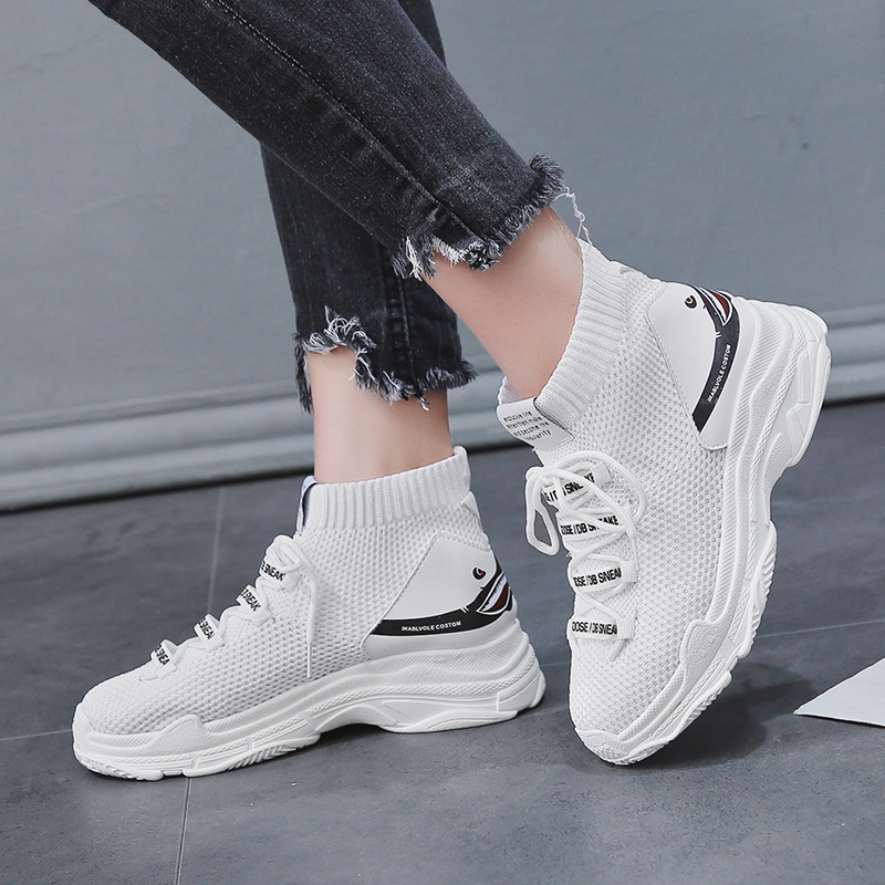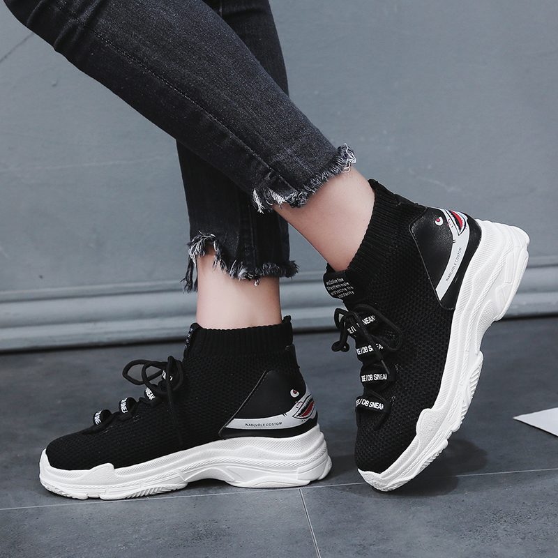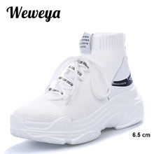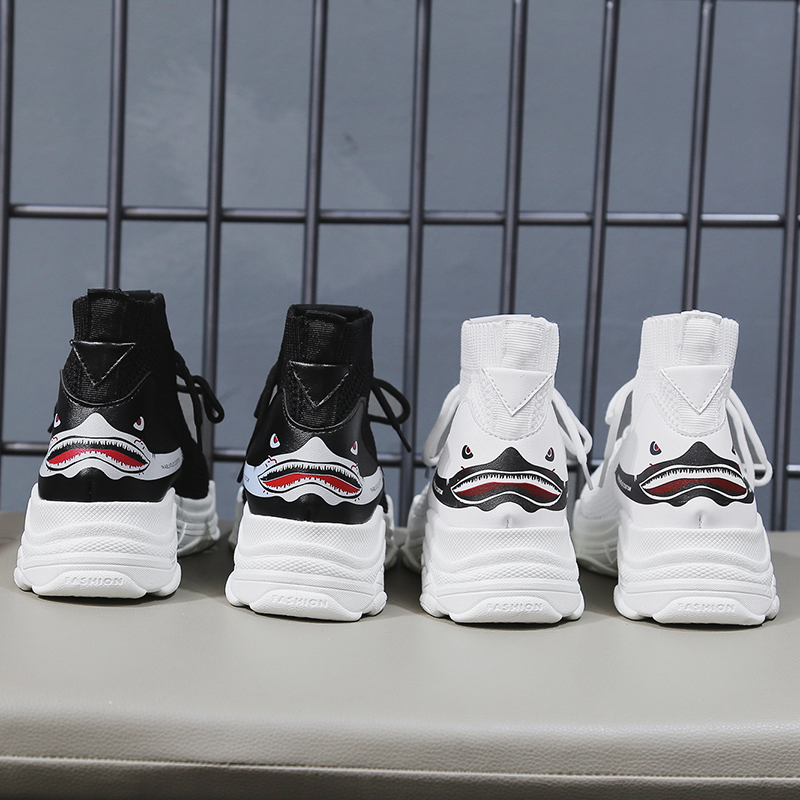Weweya Totem Cartoon Shark Sock Shoes Women High Top Letter Sock Sneakers Woman Flats Platform Outdoor Canvas Shoes Plus Size 44