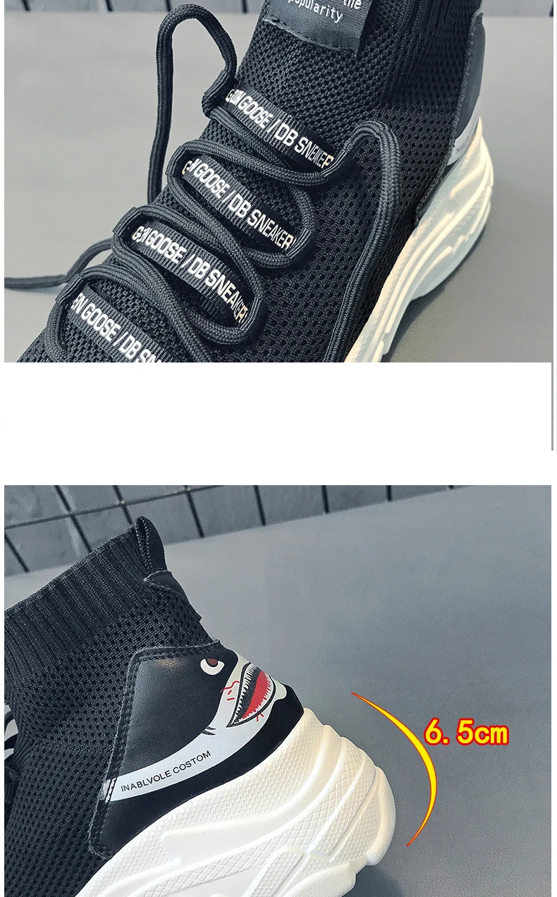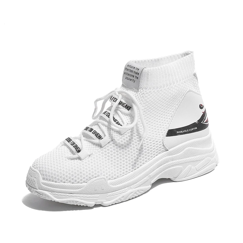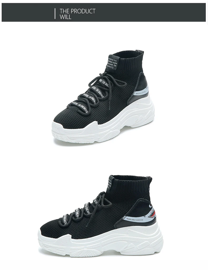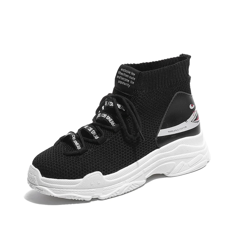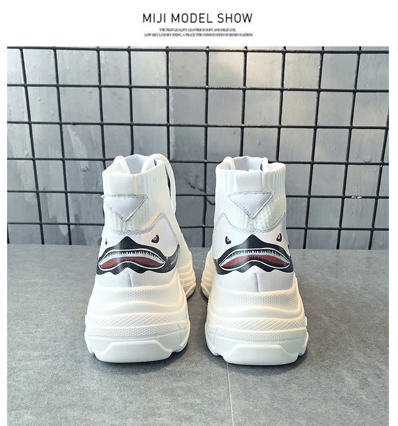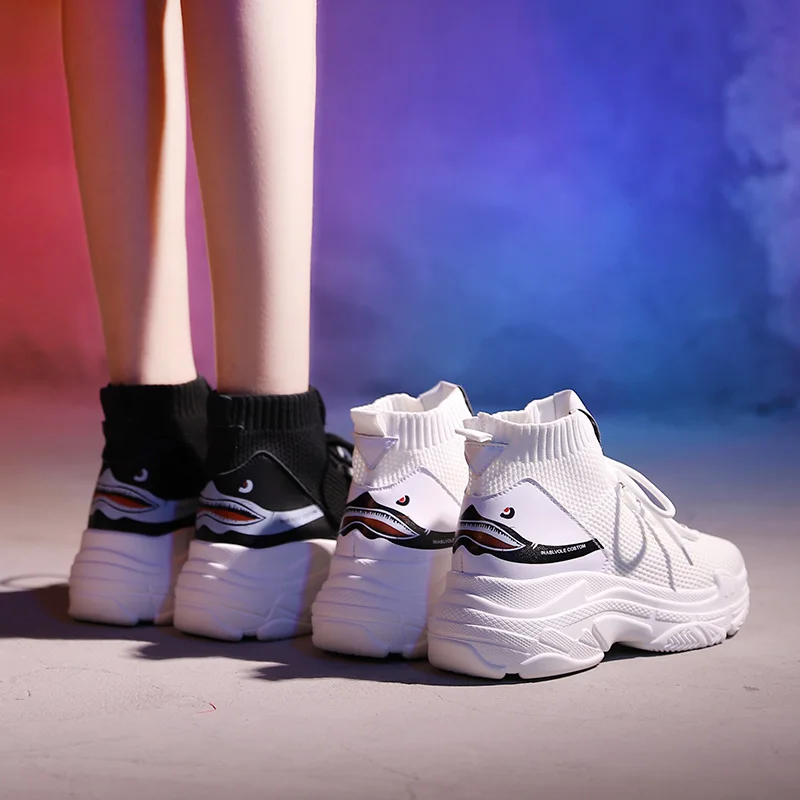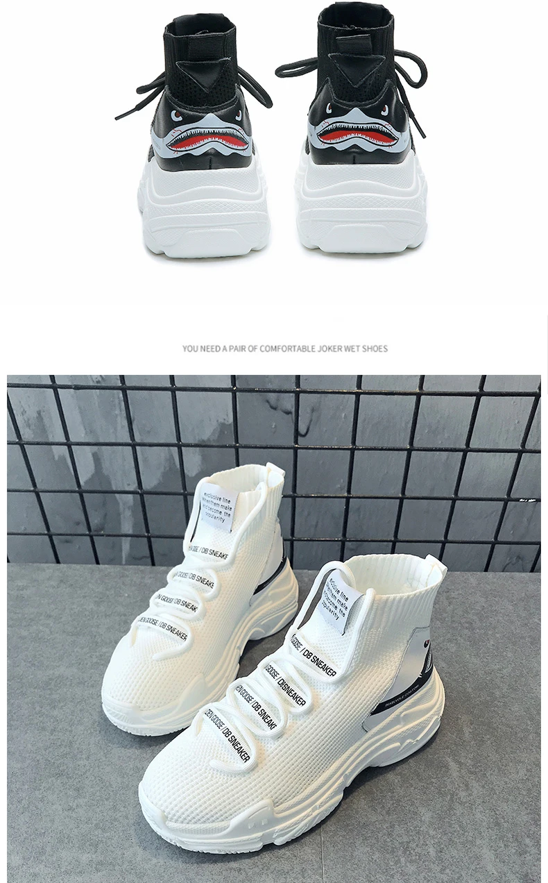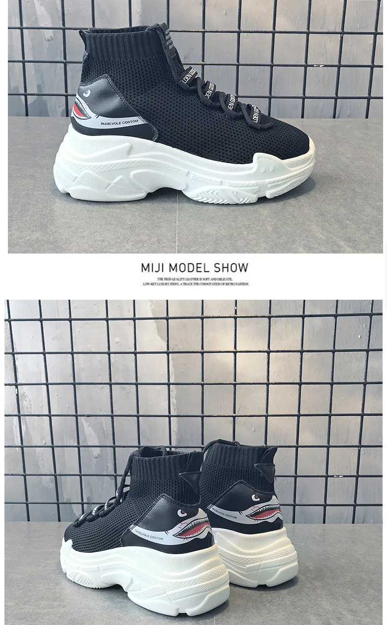 Weweya Totem Cartoon Shark Sock Shoes Women High Top Letter Sock Sneakers Woman Flats Platform Outdoor Canvas Shoes Plus Size 44