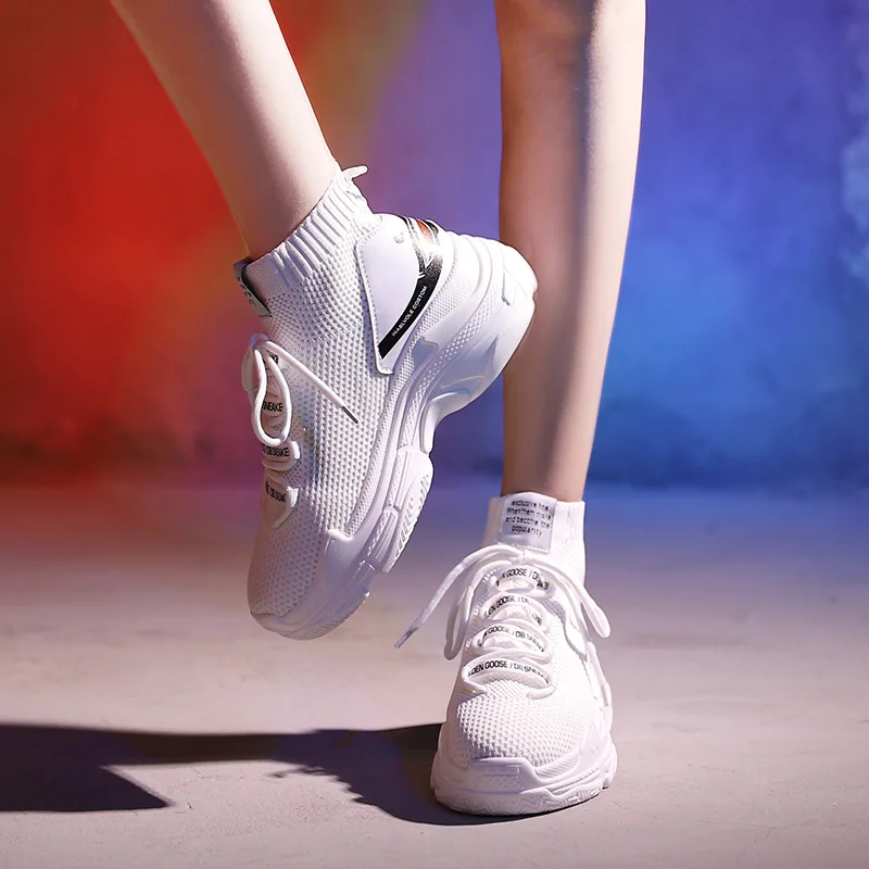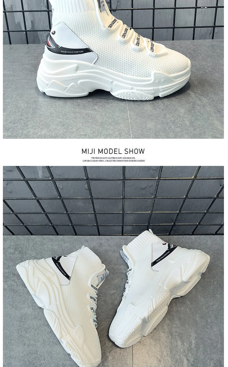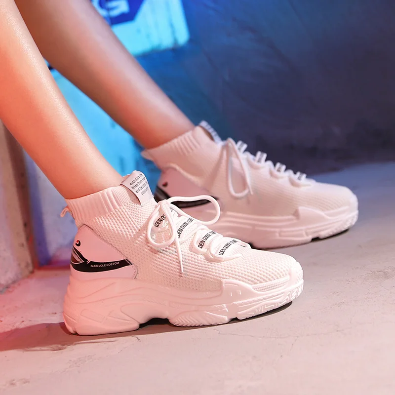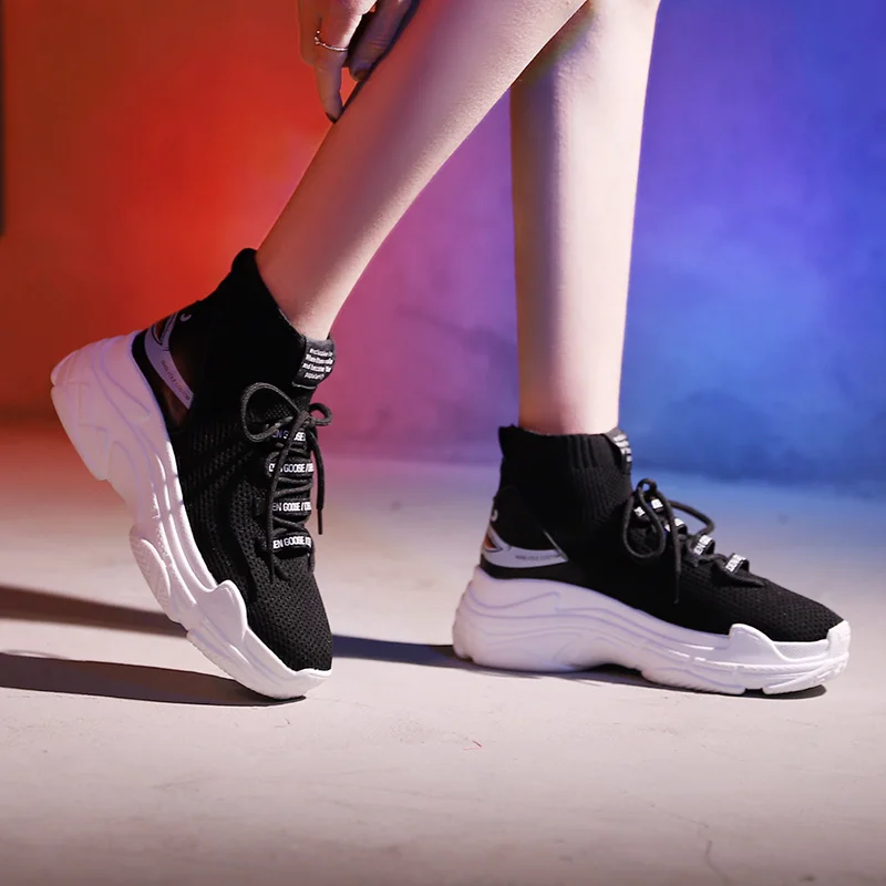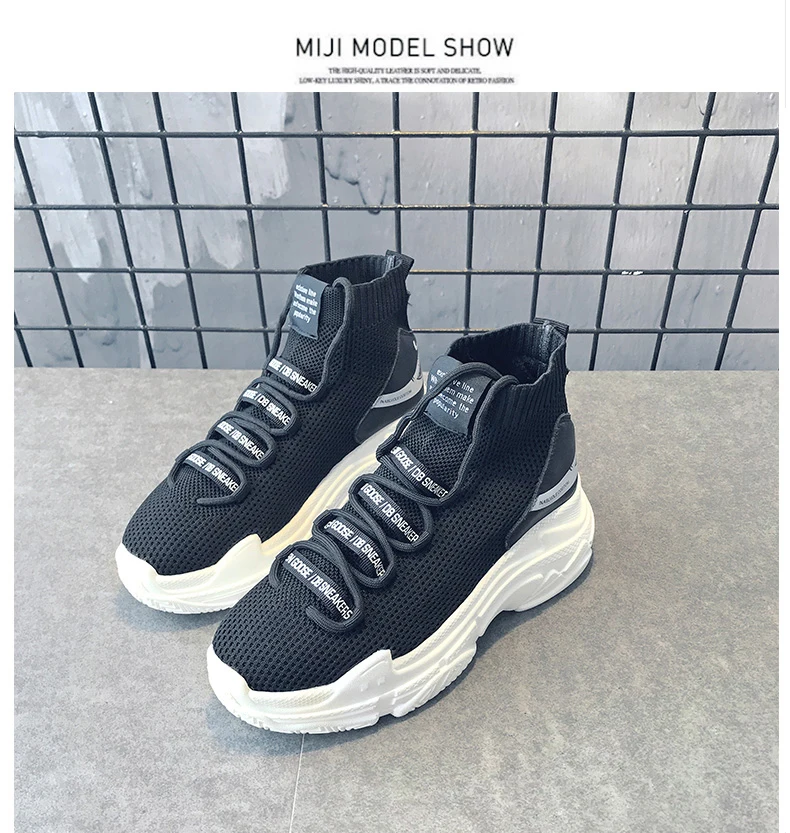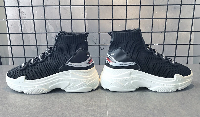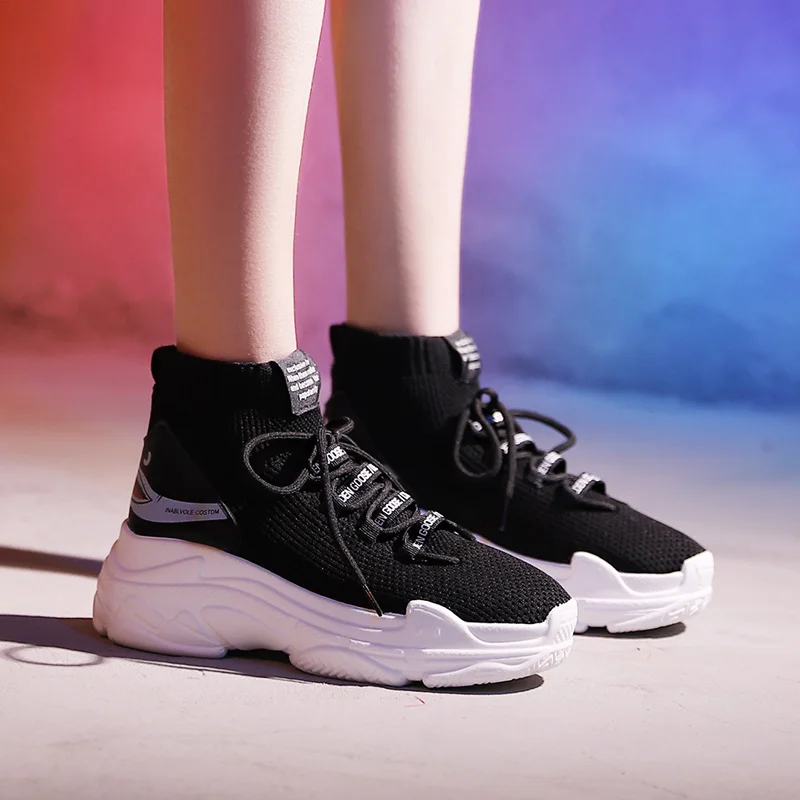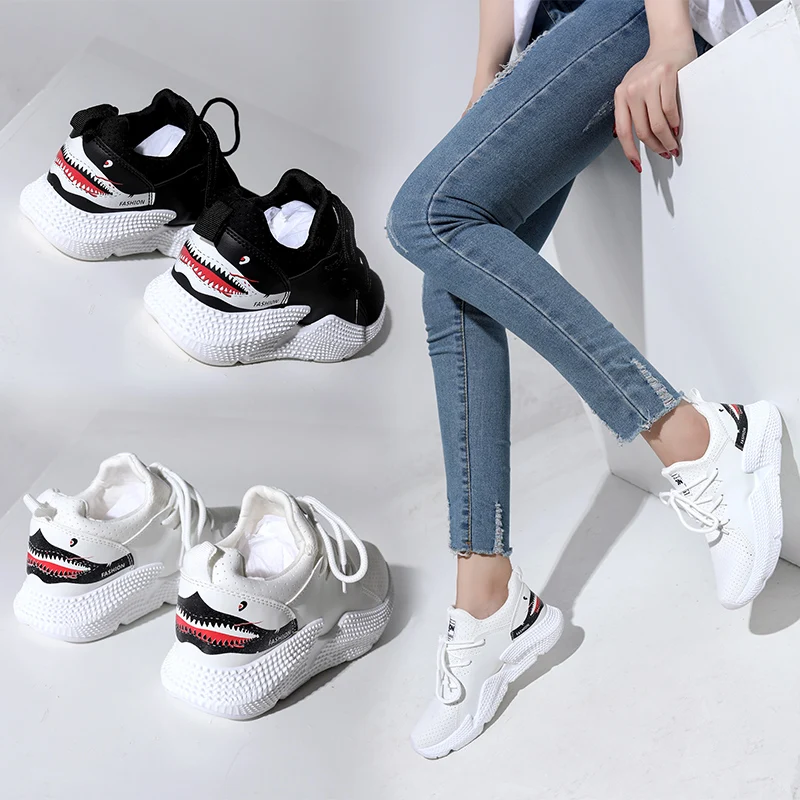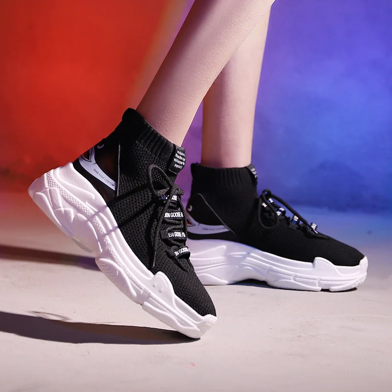Weweya Totem Cartoon Shark Sock Shoes Women High Top Letter Sock Sneakers Woman Flats Platform Outdoor Canvas Shoes Plus Size 44