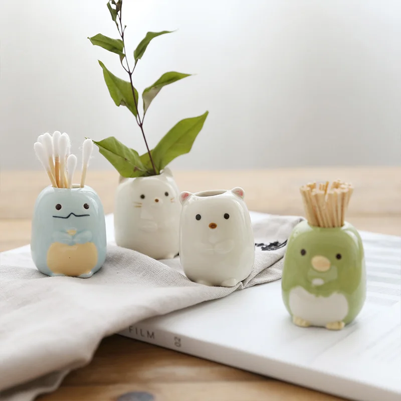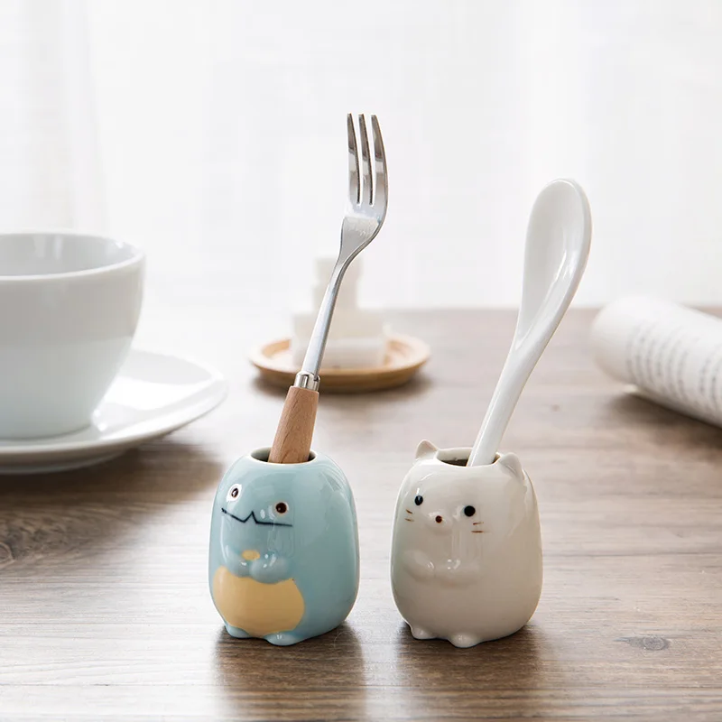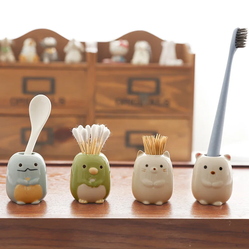 WHISM Ceramic Cartoon Animal Toothbrush Holder Bathroom Stand Toothbrushes Sundries Storage Container Tableware Organizer Rack