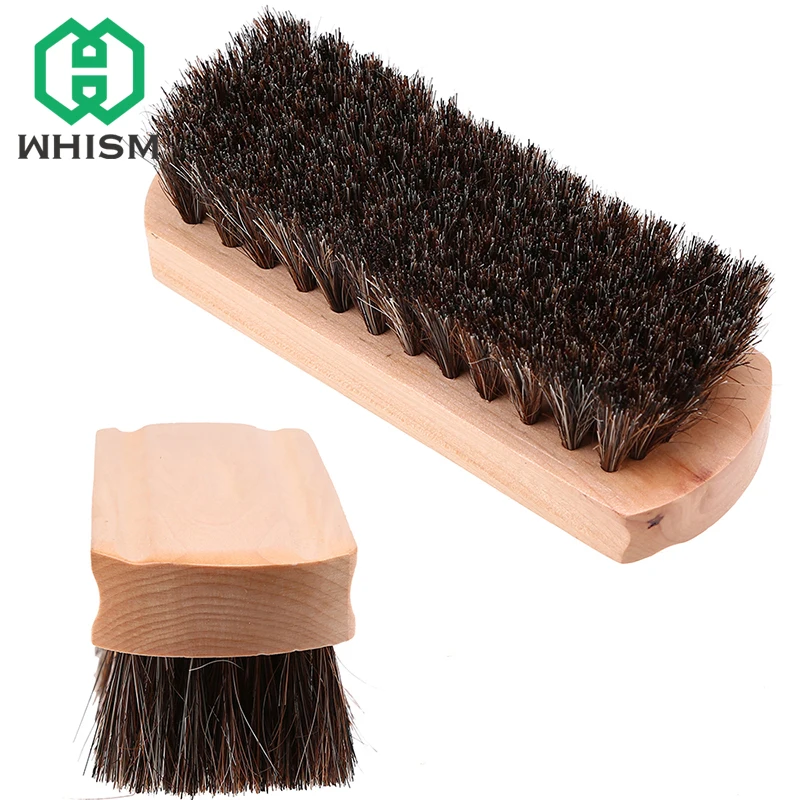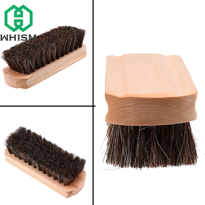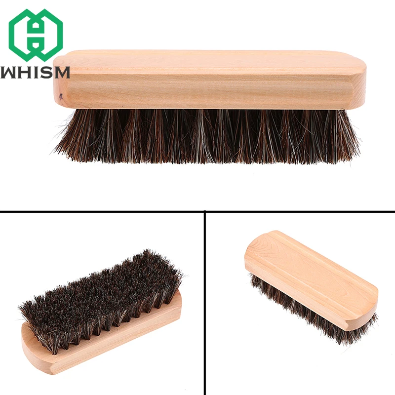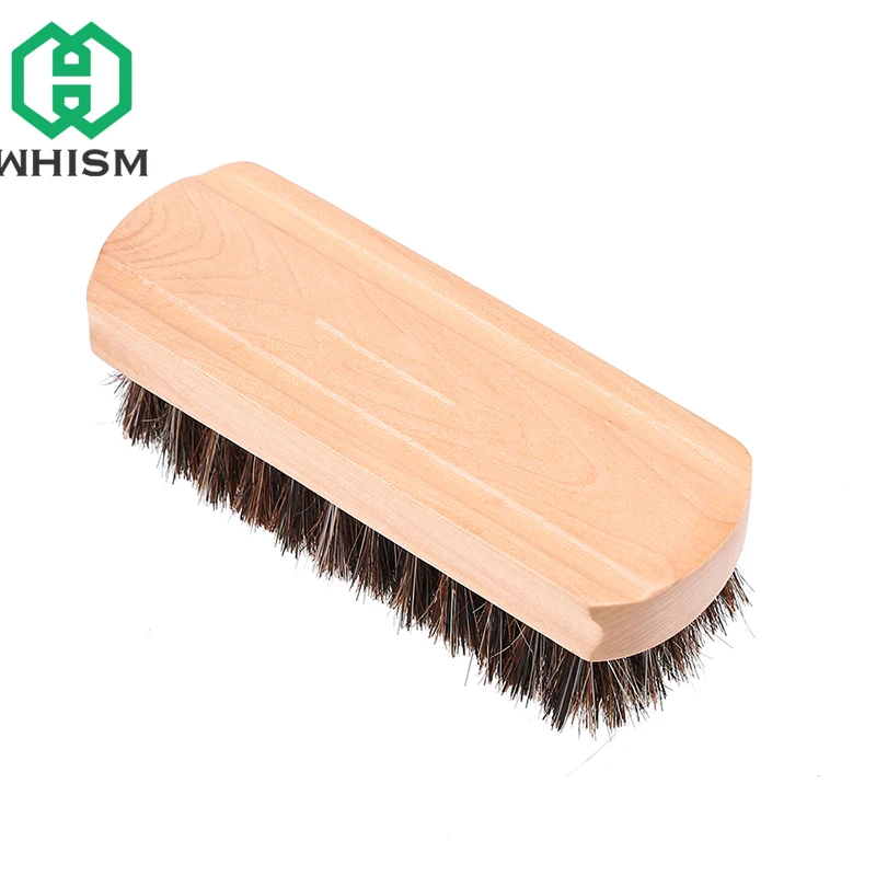 WHISM Soft Horse Hair Shoe Brush Wooden Shoe Polish Multipurpose Home Cleaning Tools Leather Sneaker Cleaner