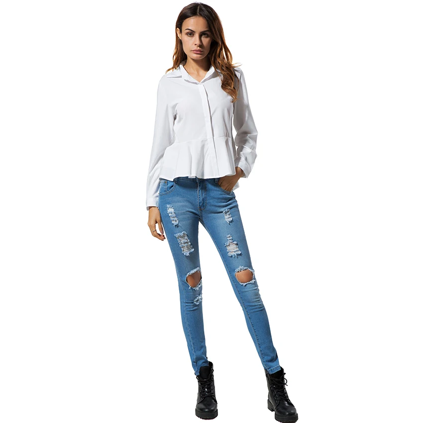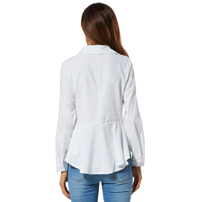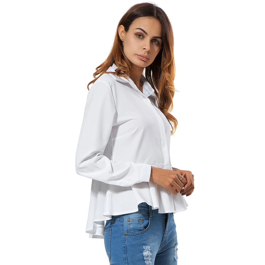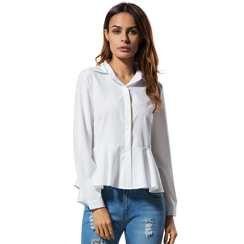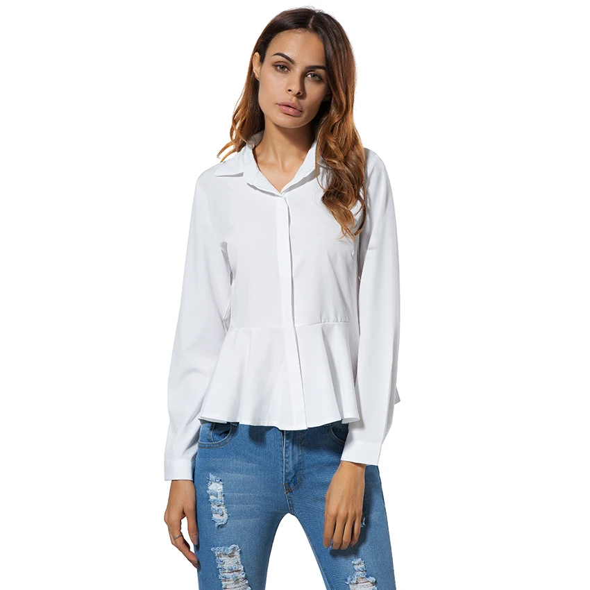 White Blouses And Shirts Women Peplum Tops 2018 New Fashion Collar Long Sleeve Shirt Women Casual Clothing With Ruffles