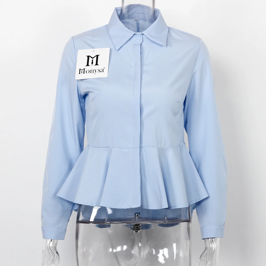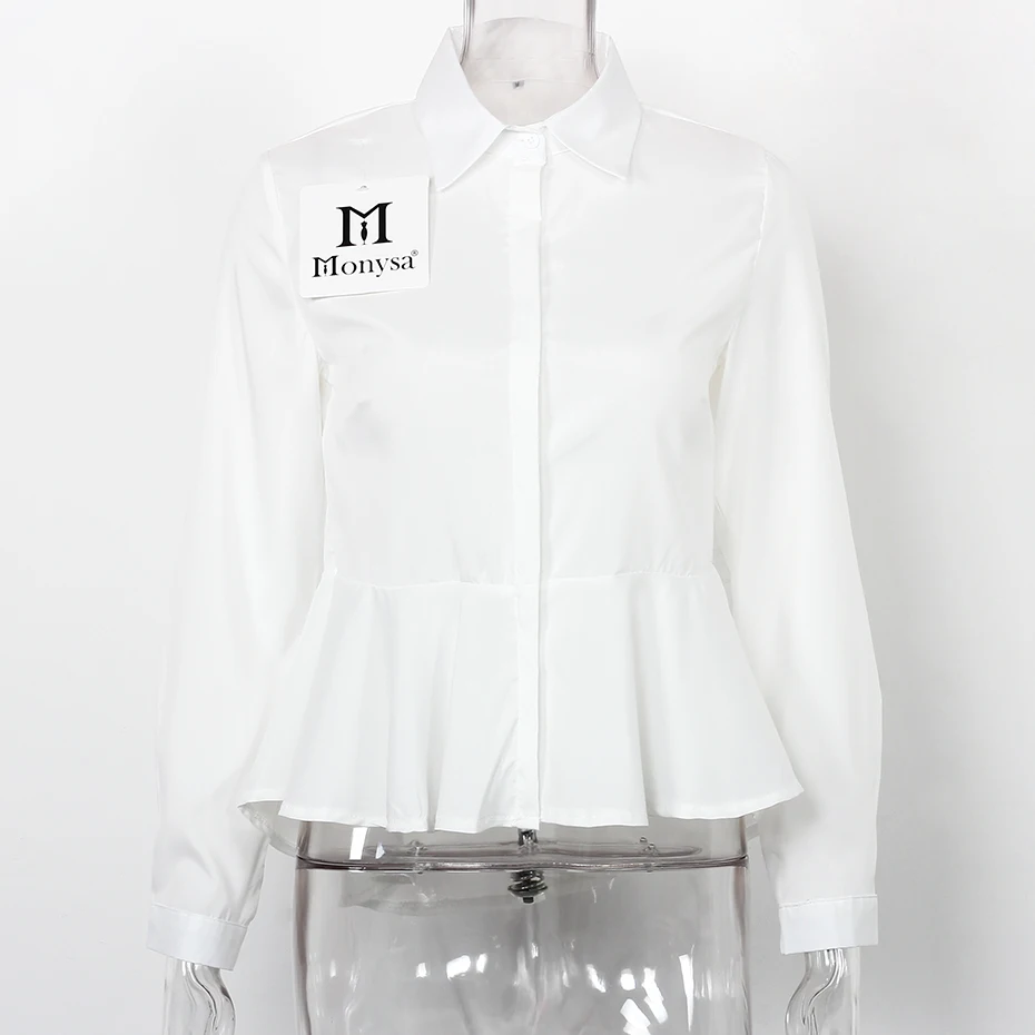 White Blouses And Shirts Women Peplum Tops 2018 New Fashion Collar Long Sleeve Shirt Women Casual Clothing With Ruffles