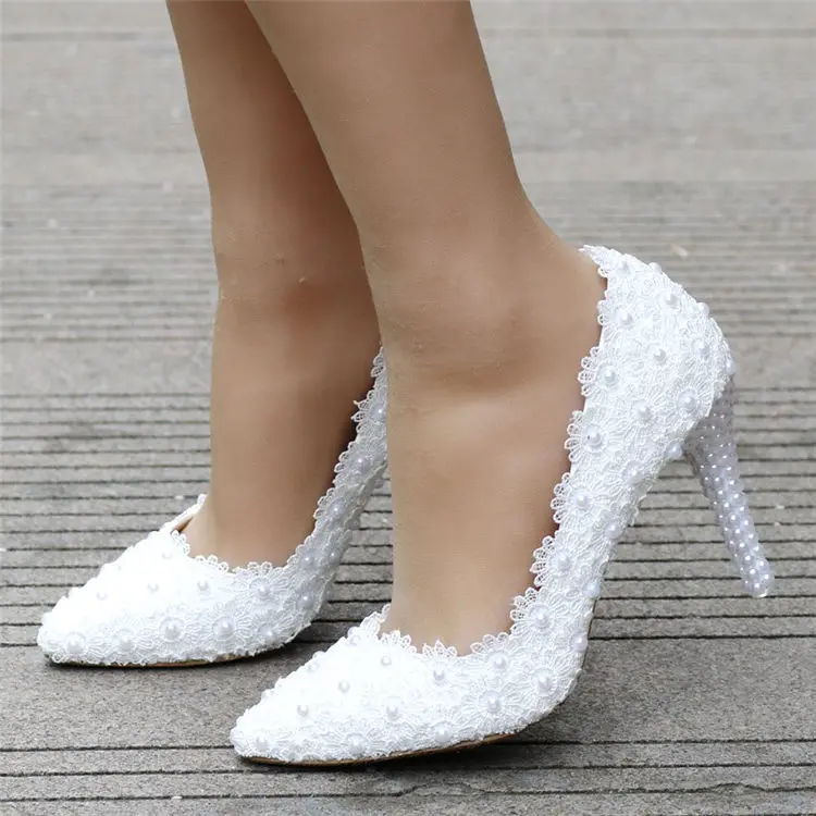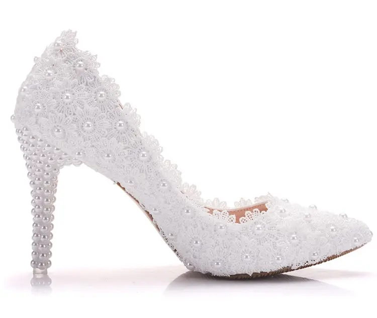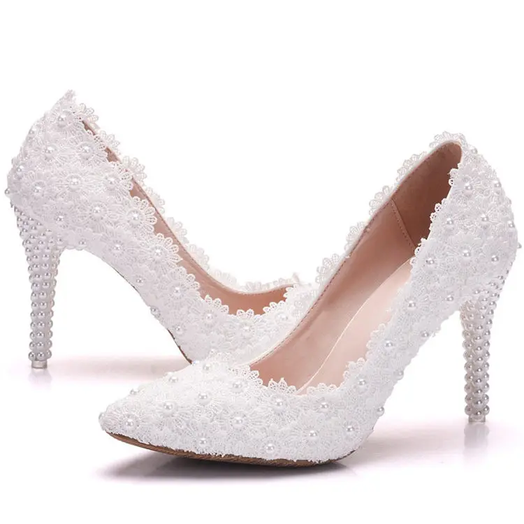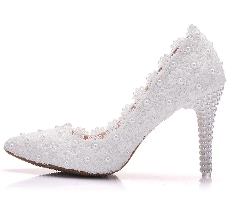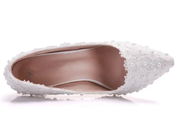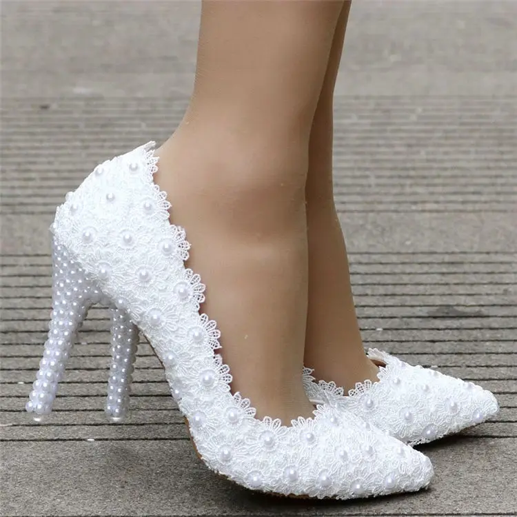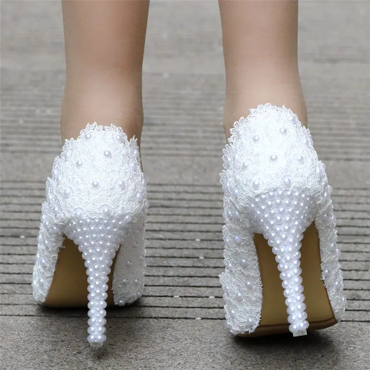 White Lace High Heels Wedding Shoes bride Party Shoes Women Pumps Ladies High Heels Bridal Shoes big size 34-41
