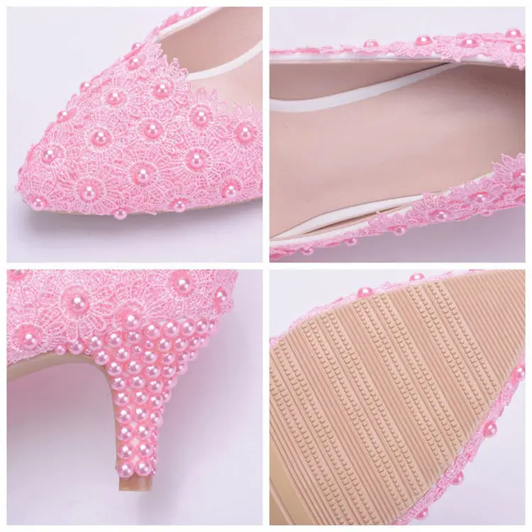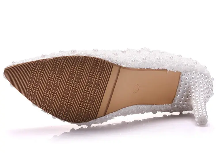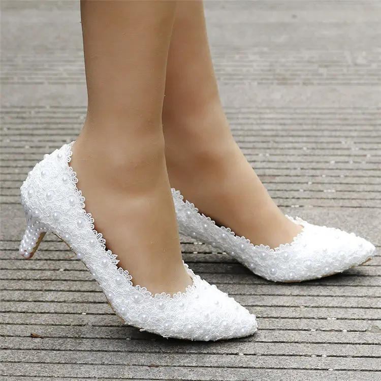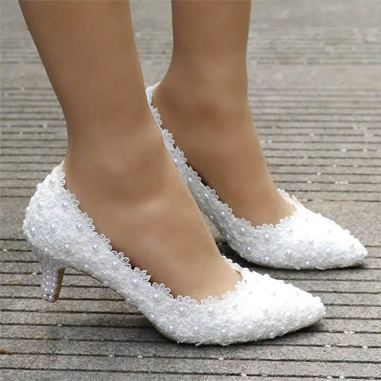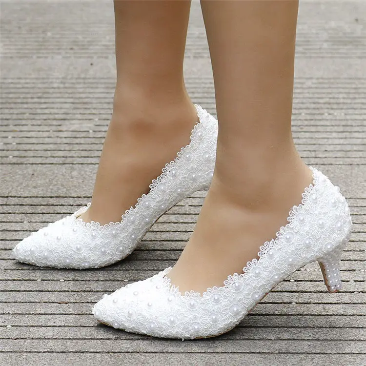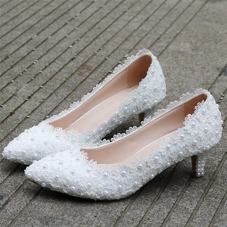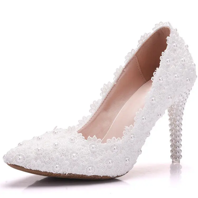 White Lace High Heels Wedding Shoes bride Party Shoes Women Pumps Ladies High Heels Bridal Shoes big size 34-41