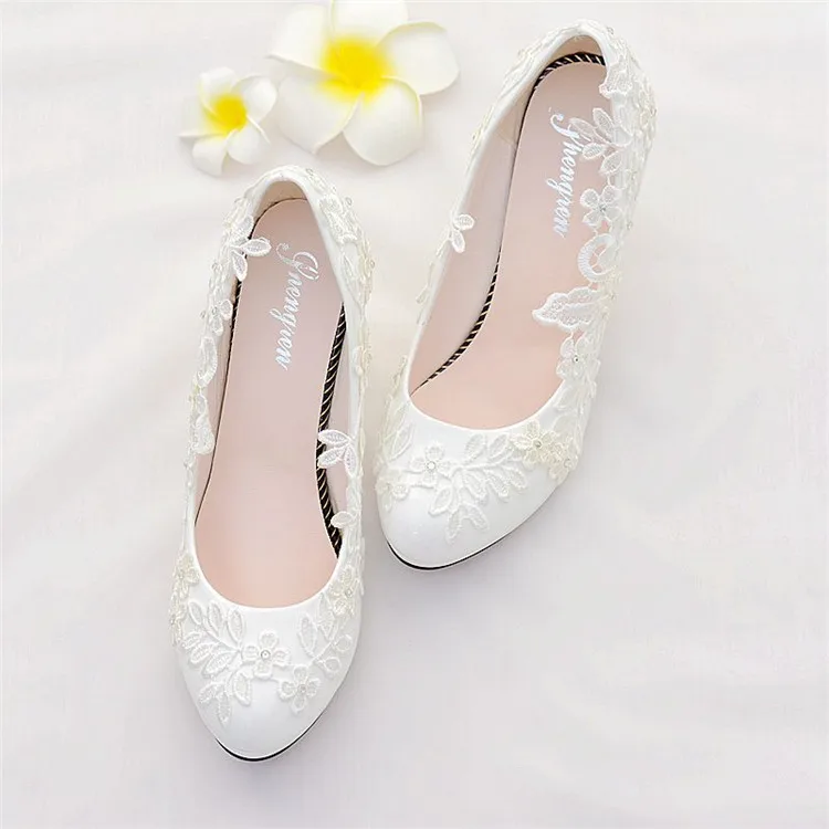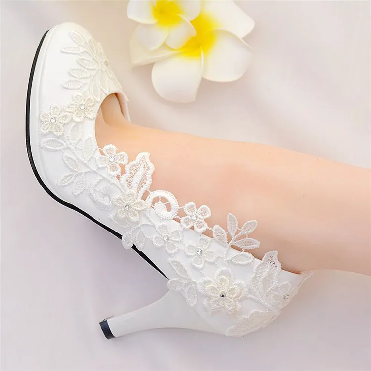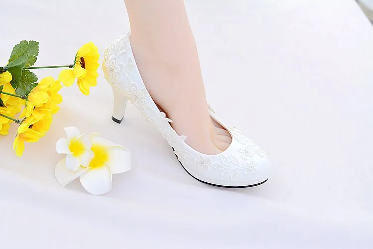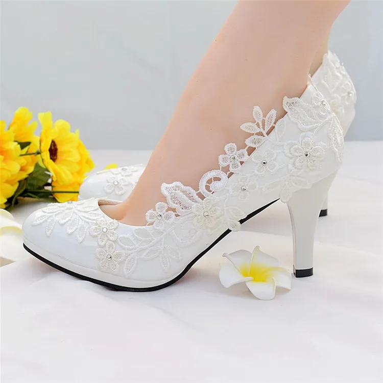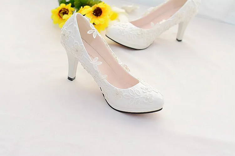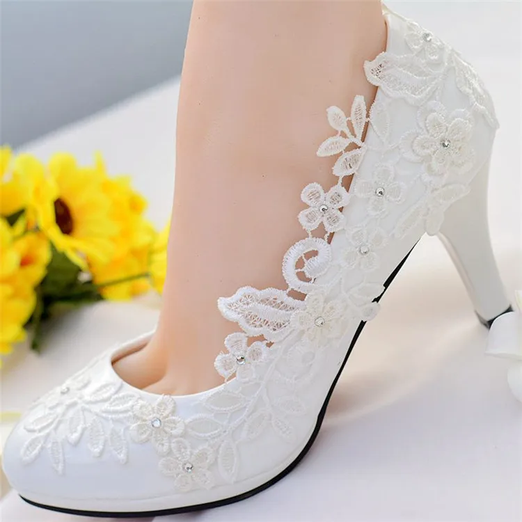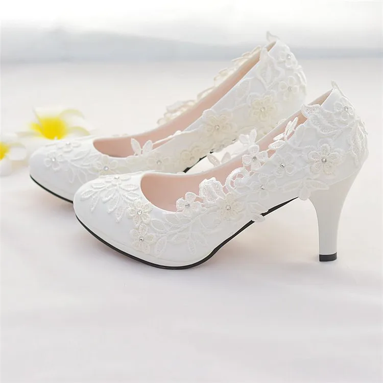 white Lace wedding shoes bride high heels ladies shoes with heels pumps women shoes bride shoes chaussure femme talon