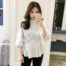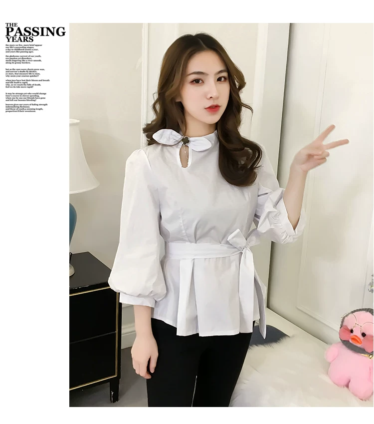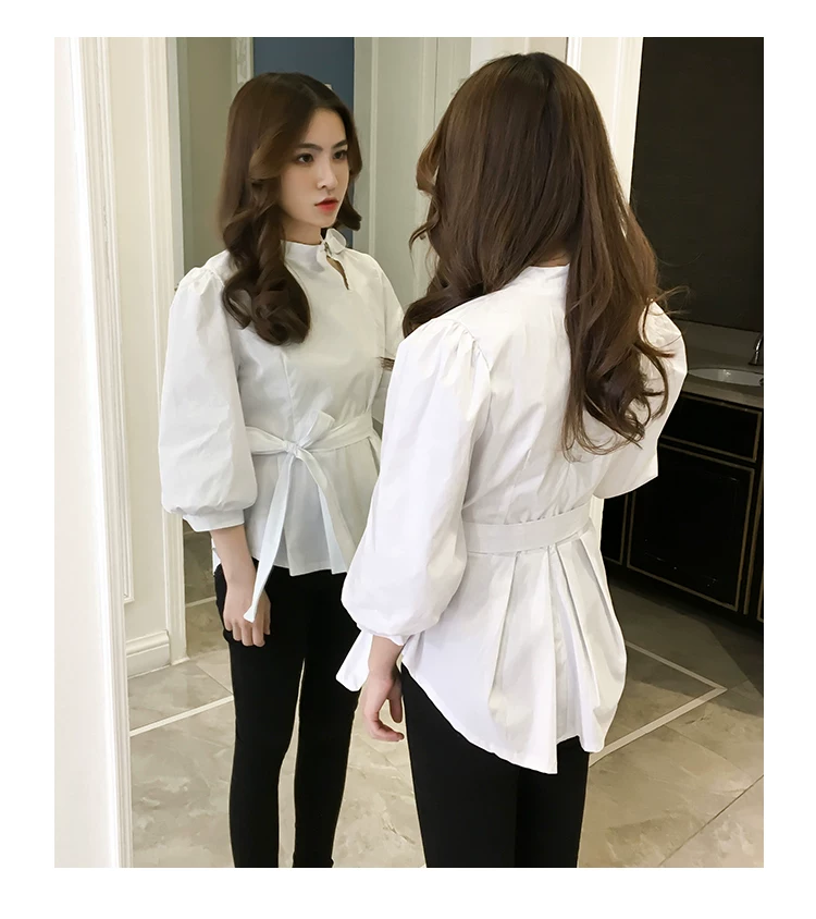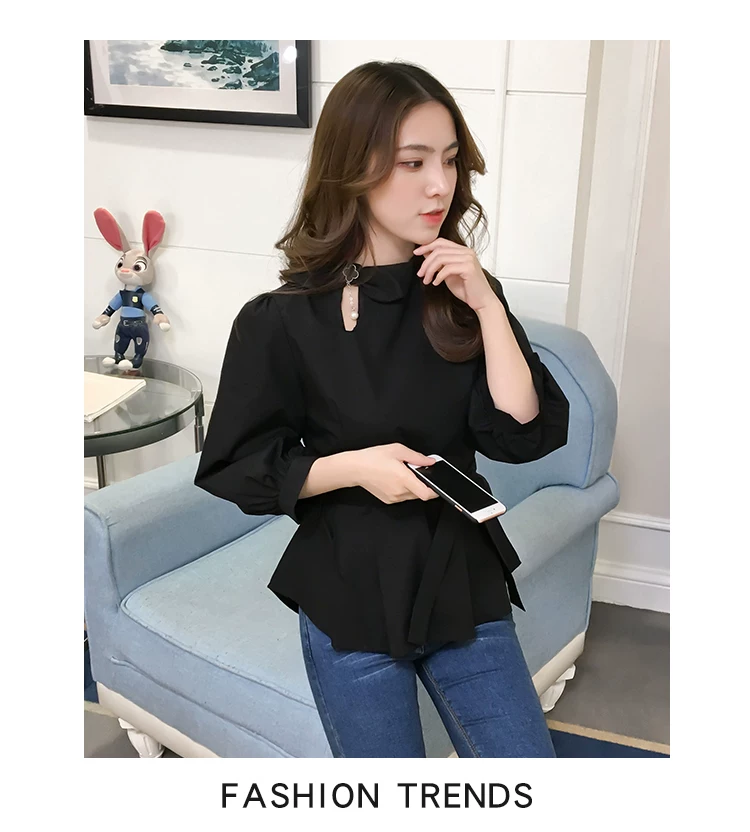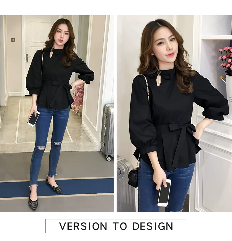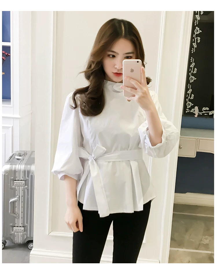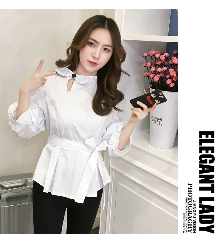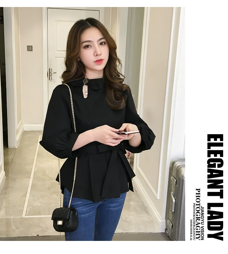 Product Name :White Shirt Women Peplum TopFashion 2018 Summer Lantern Sleeve Tops For Women 2018 Streetwear Black Plaid Women Blouse With Bow