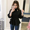 Product Name :White Shirt Women Peplum TopFashion 2018 Summer Lantern Sleeve Tops For Women 2018 Streetwear Black Plaid Women Blouse With Bow