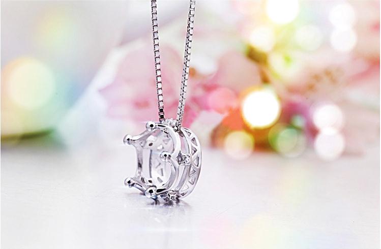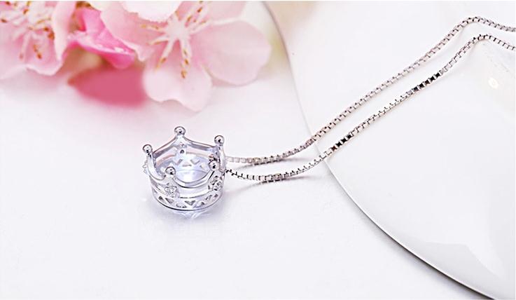 Wholesale 925 sterling silver fashion crown ladies`pendant necklace jewelry women short box chain drop shipping