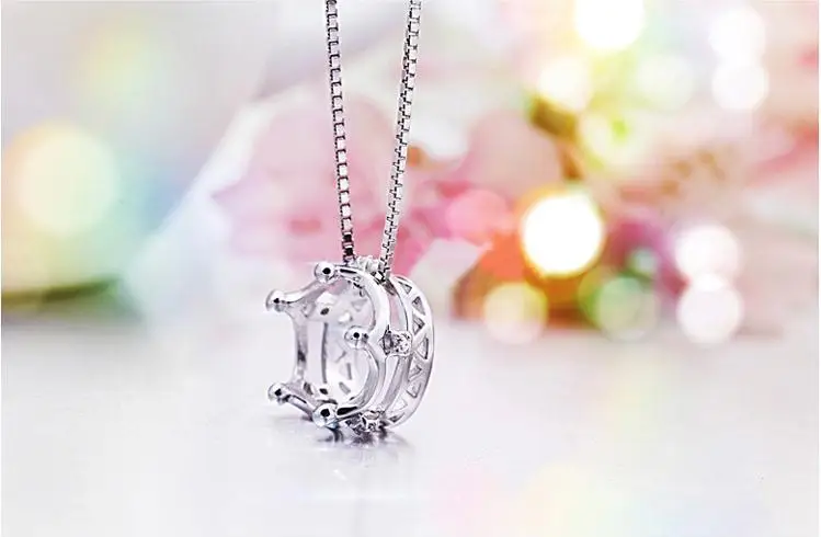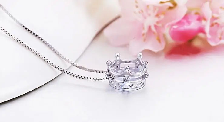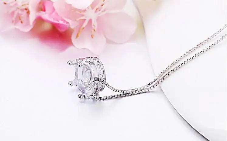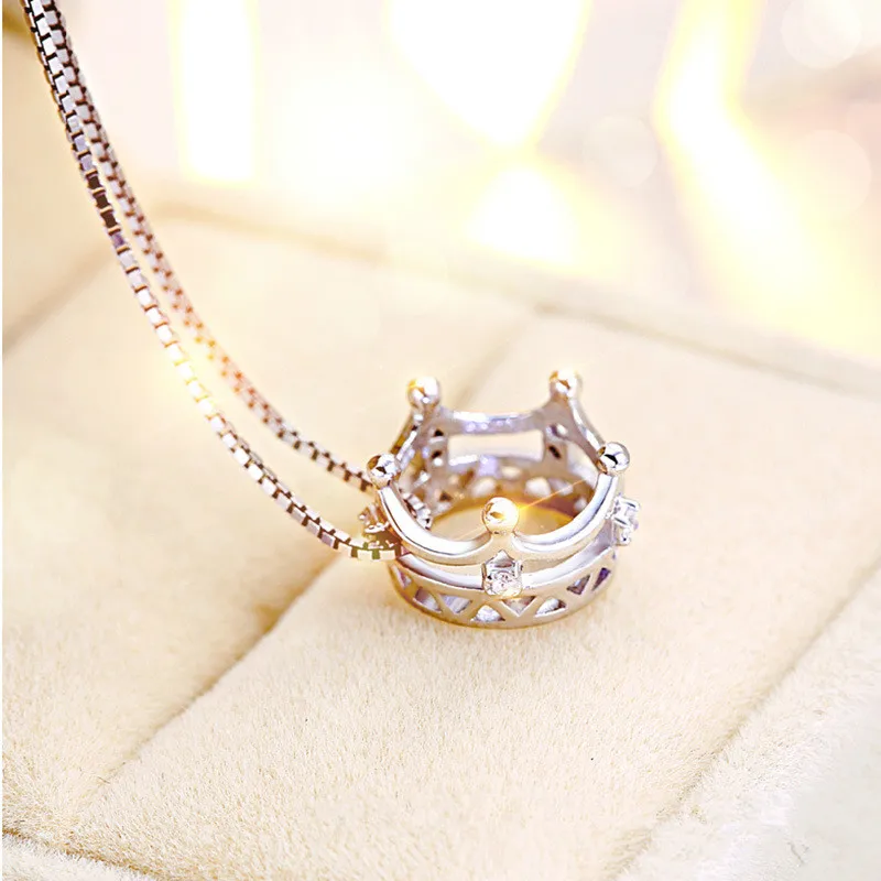 Wholesale 925 sterling silver fashion crown ladies`pendant necklace jewelry women short box chain drop shipping