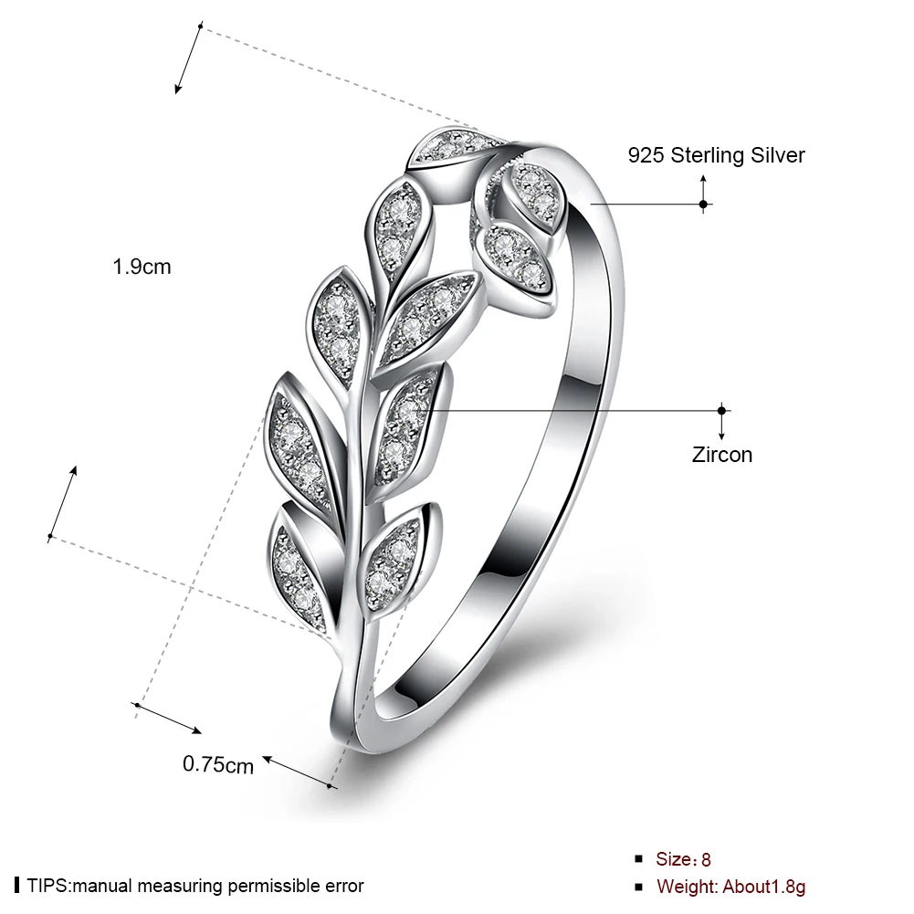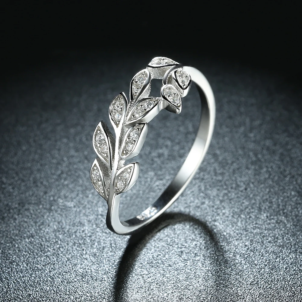 Wholesale 925 Sterling Silver Leaf Tree Rings With Clear CZ Zircon for Women Original Fine Jewelry