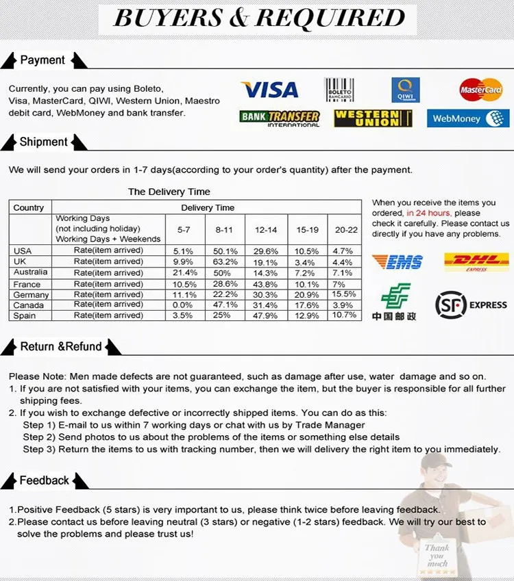 *You can submit refund requests within 15 days after the guaranteed period for delivery (45 days) has expired. You can do it by sending a message on Contact Us page