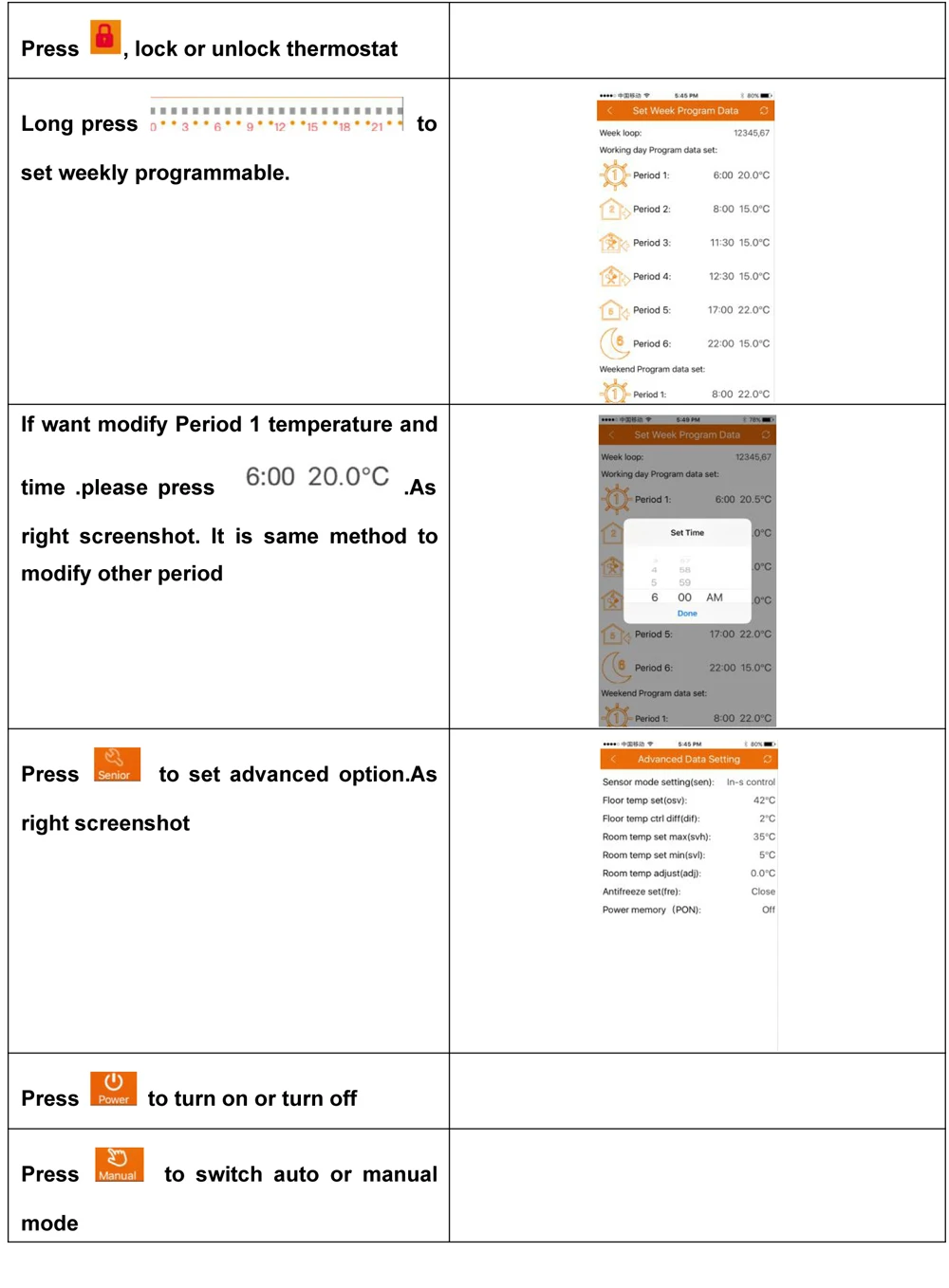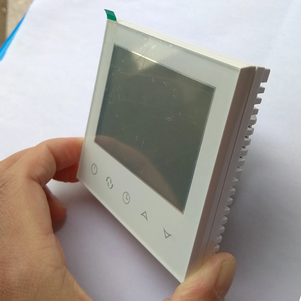 HY03 series thermostat is a touch screen programmable thermostat designed for electric floor heating, infrared radiator heater panel heating and carbon crystal wall heating.It helps to limit room temperature.This thermostat can be used for room electric heating systems. Models are with NTC sensor to detect ambient and floor temperature and do the control by compared with the setting one.
