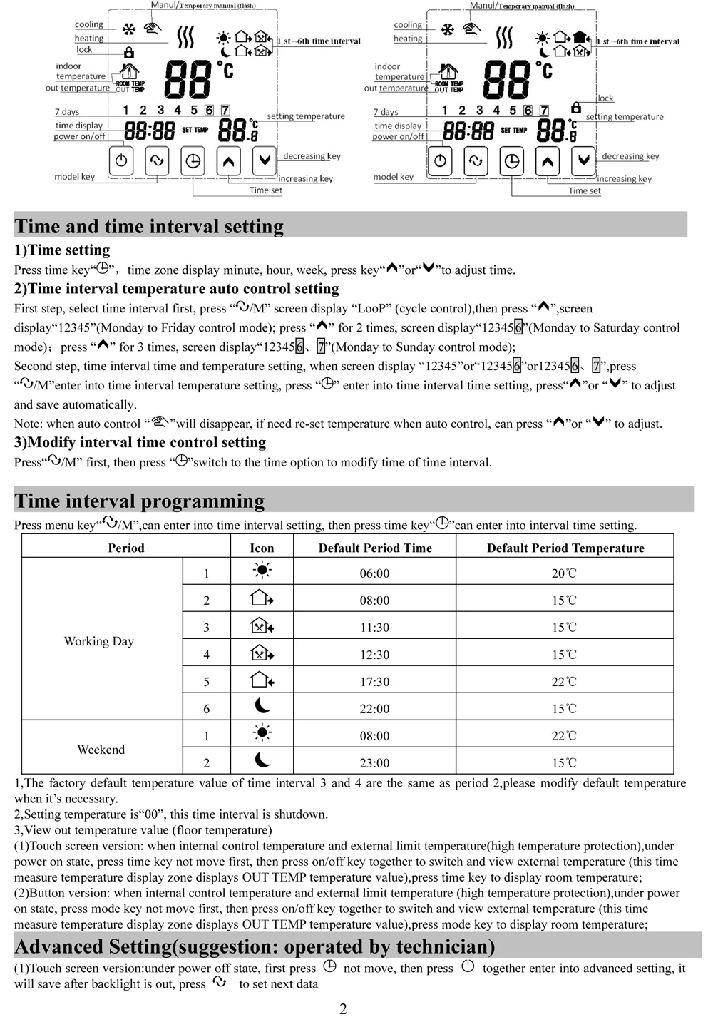 Weekly programmable:7 days programmable and 6 period programmable per day