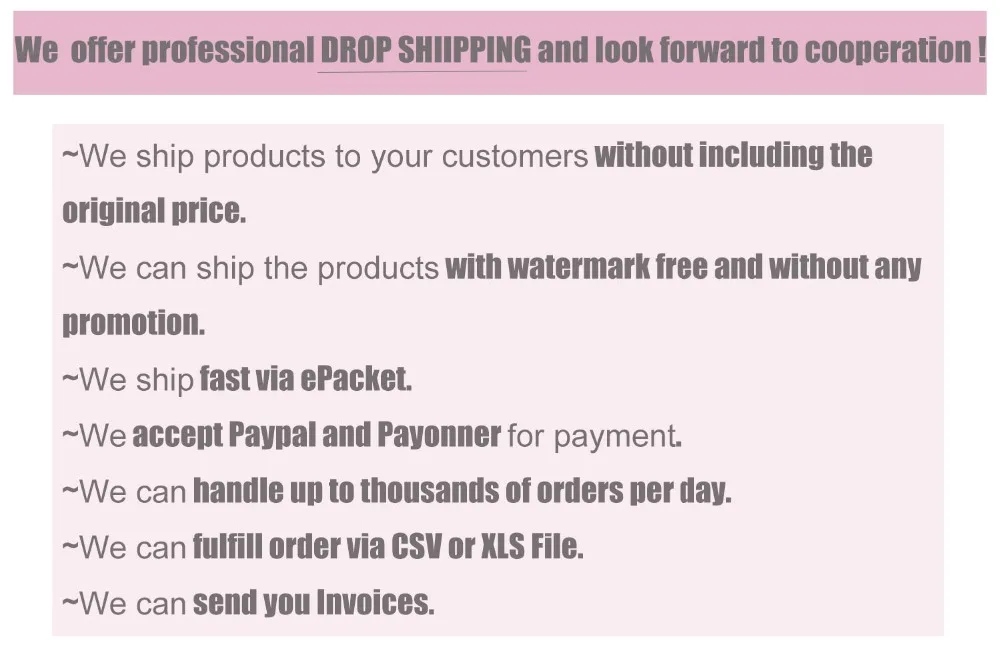 Packages from our warehouse in China will be shipped by ePacket or EMS depending on the weight and size of the product. Packages shipped from our US warehouse are shipped through USPS.