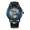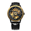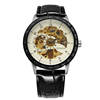 WINNER Automatic Mechanical Mens Watches Top Brand Luxury Skeleton Golden Dial Anti-reflective Coating Case Leather Wrist Watch
