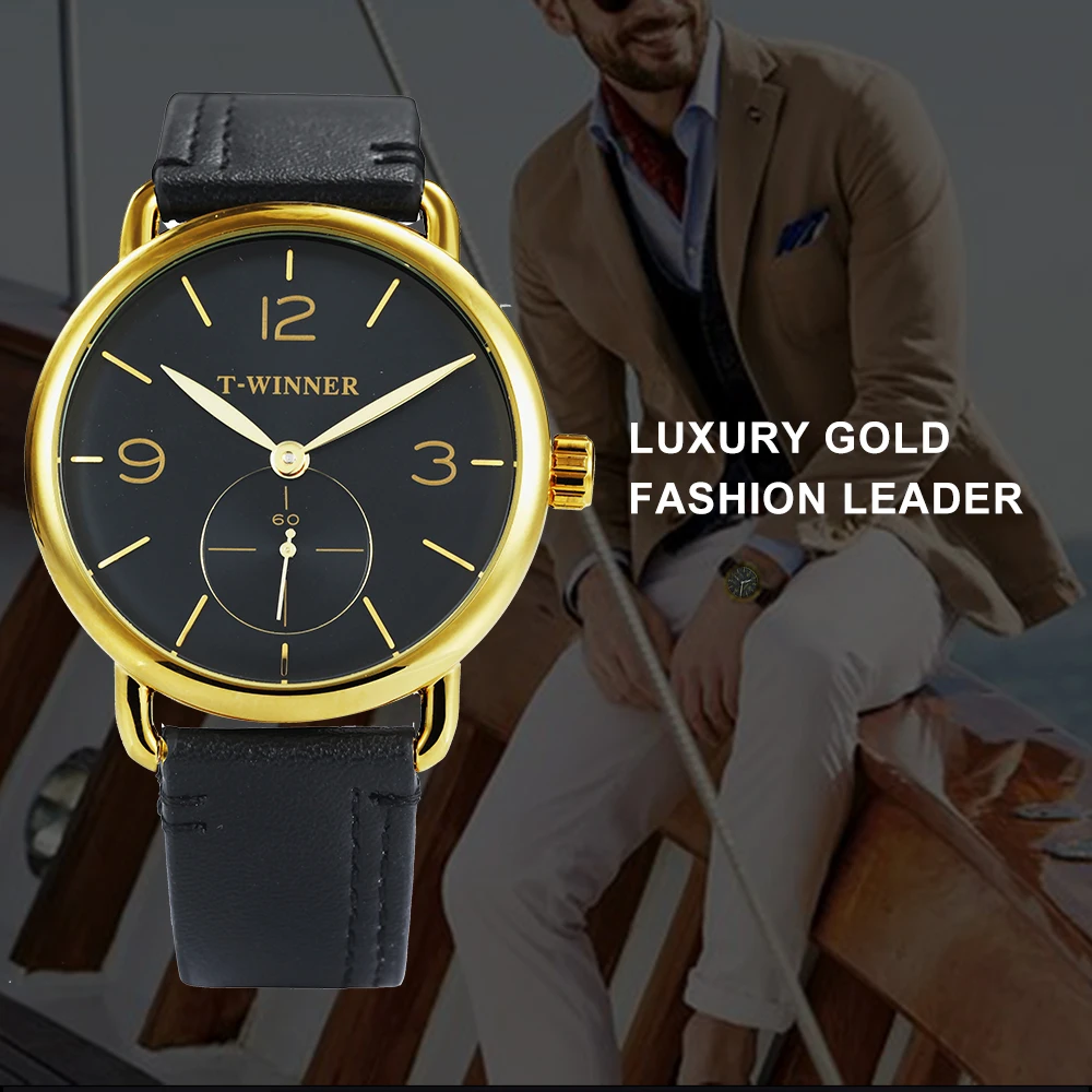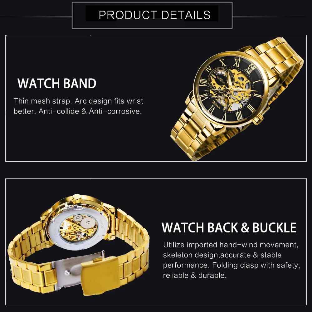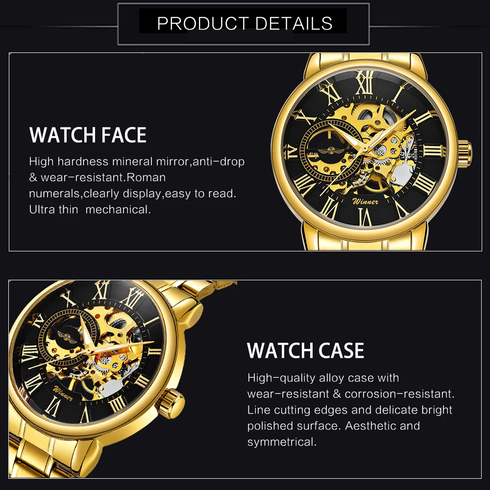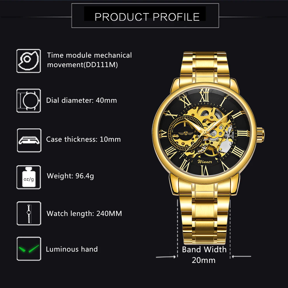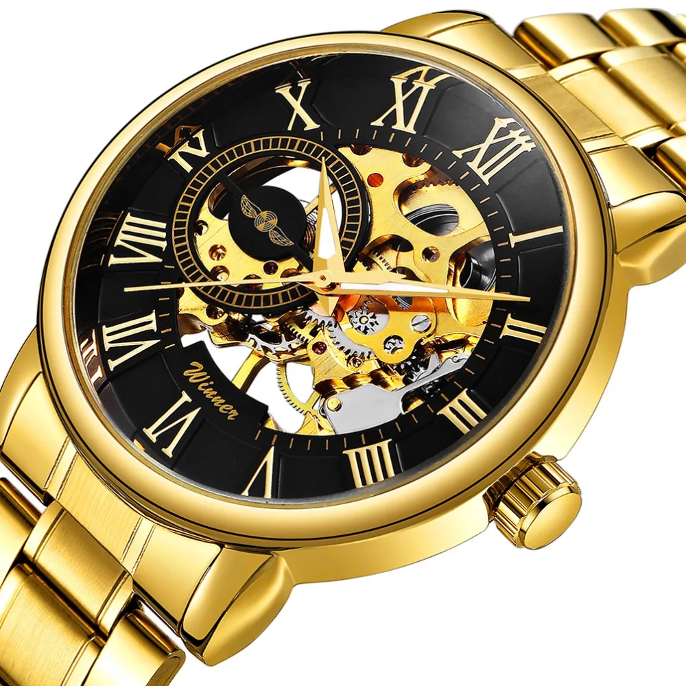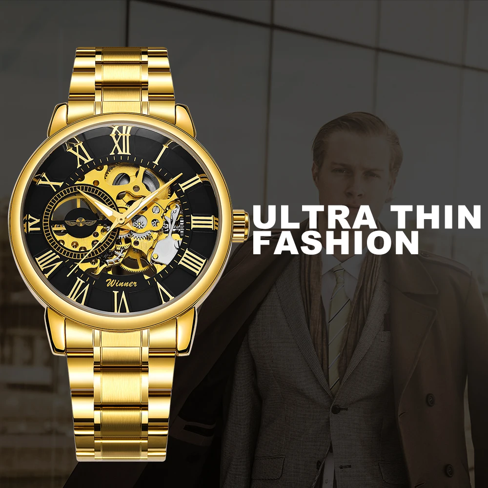 WINNER Classic Golden Skeleton Mechanical Watch Men Stainless Steel Strap Top Brand Luxury Man Watch Vip Drop Shipping Wholesale