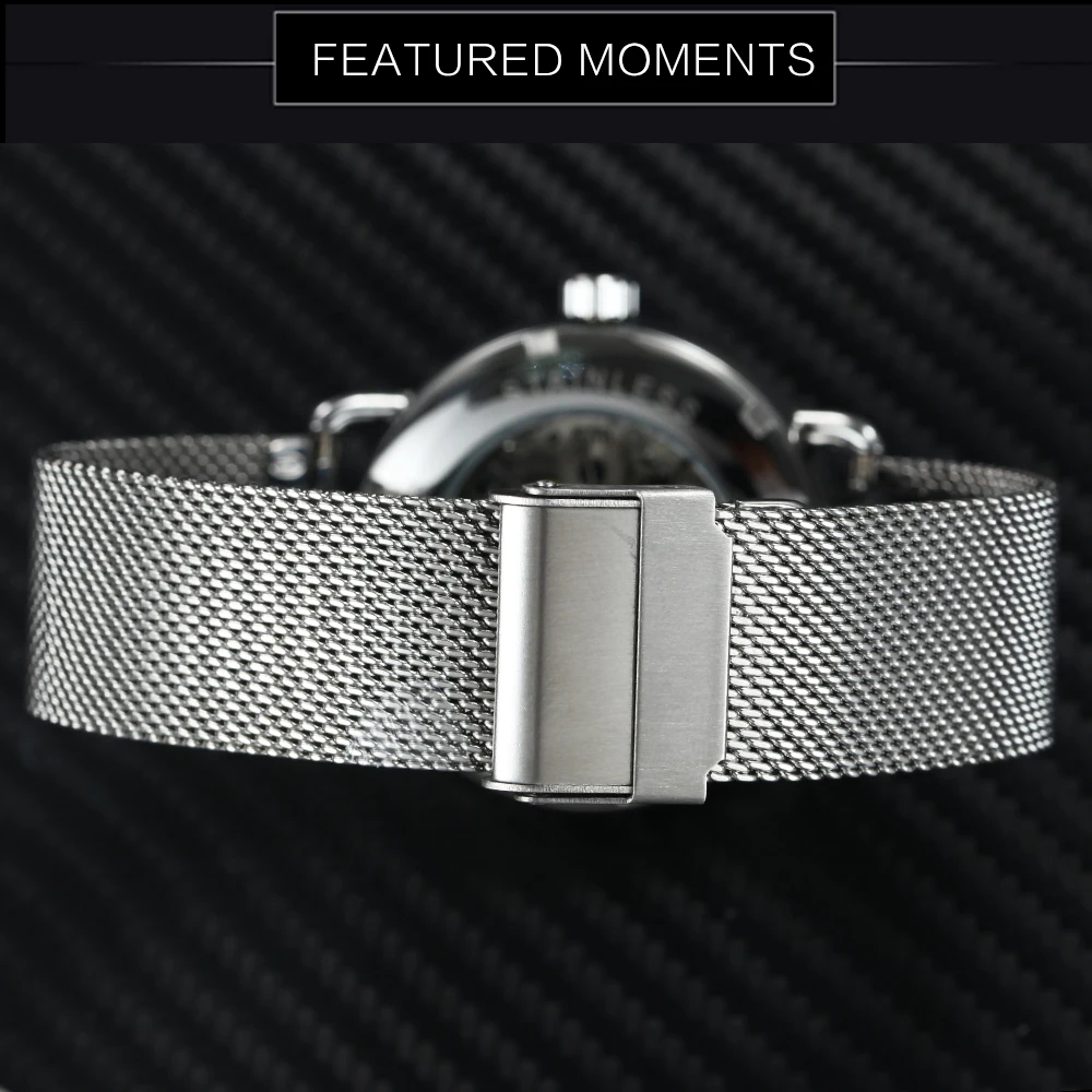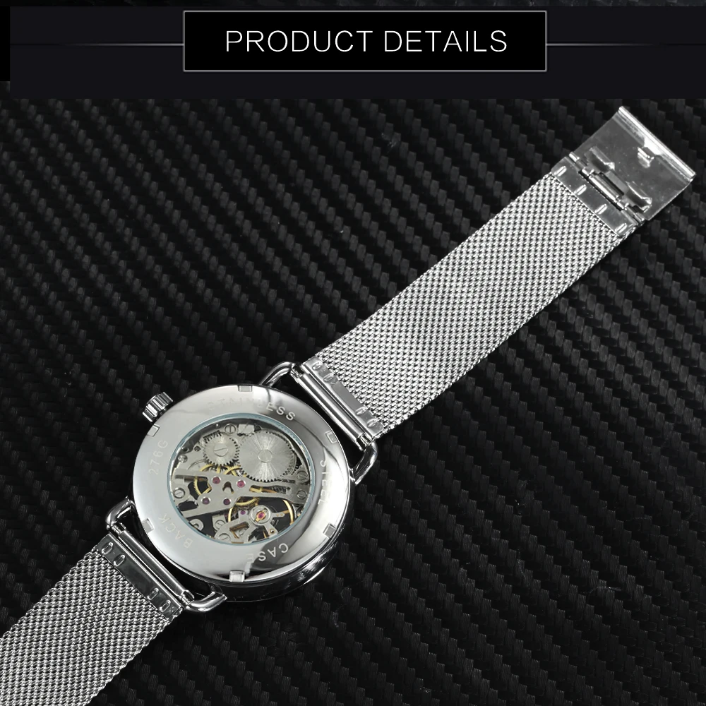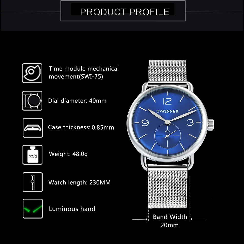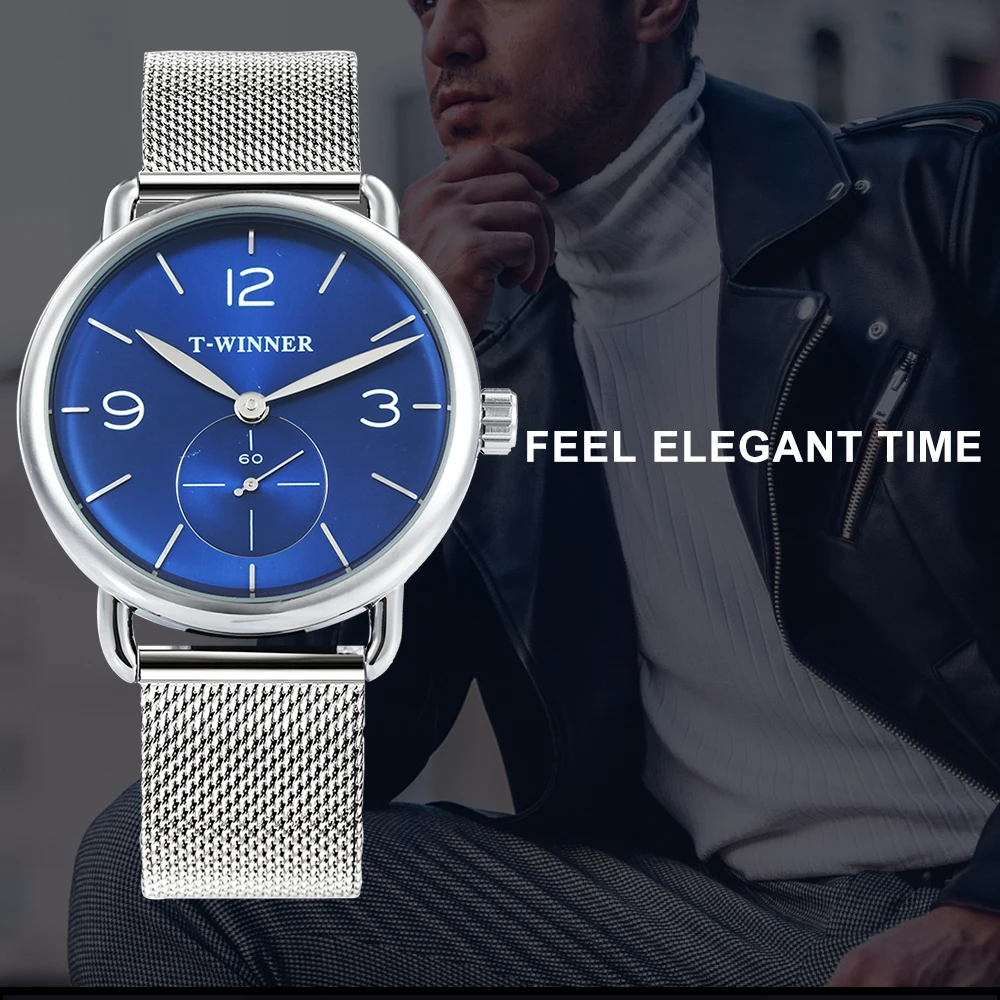WINNER Fashion Ultra Thin Mechanical Watch Men Mesh Strap Marine Dial Top Brand Luxury Business Wrist Watches Gift for Man + Box