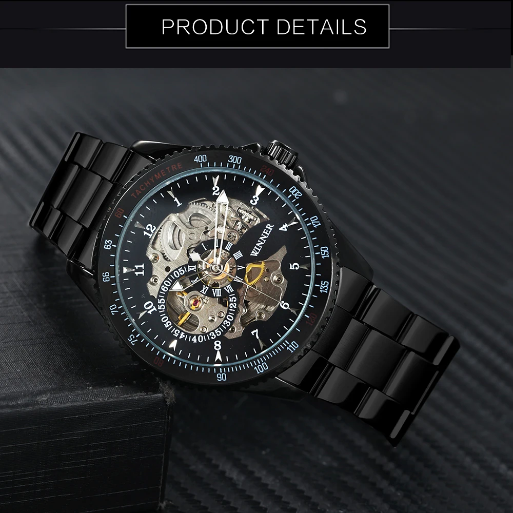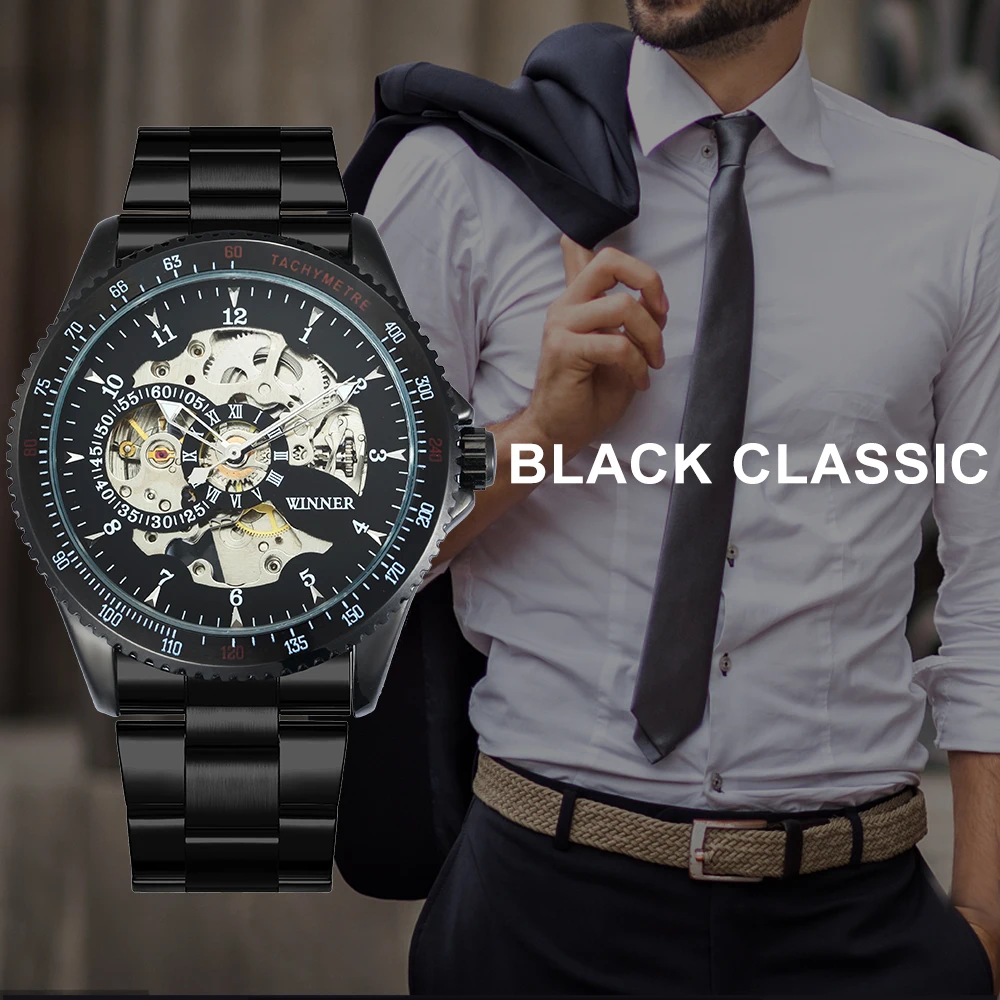 WINNER Top Brand Luxury Men Watch White Skeleton 3D Dial 2018 Automatic Mechanical Wristwatch Stainless Steel Band Fashion Clock