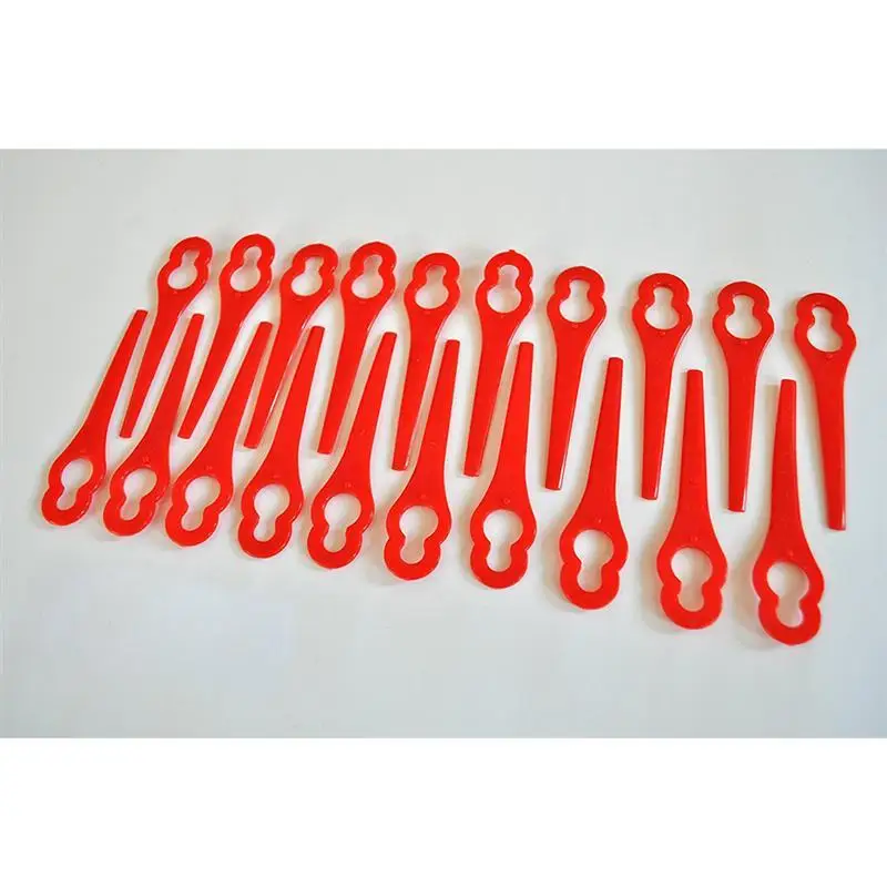 This item is a pack of 10pcs plastic trimmer blades which are manufactured especially for grass trimmer blade replacement. Made of good material, they are durable and antirust compared with other metal blades. Perfect to replace broken or dull old blades.