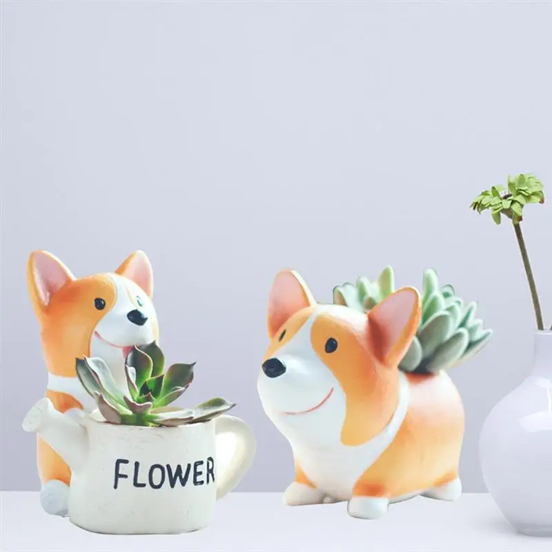 WINOMO 2pcs Corgi Flower Pots Potted Plants Cactus Plants Resin Succulent Nursery Pot Flower Pots Planter for Balcony Garden