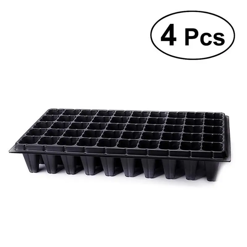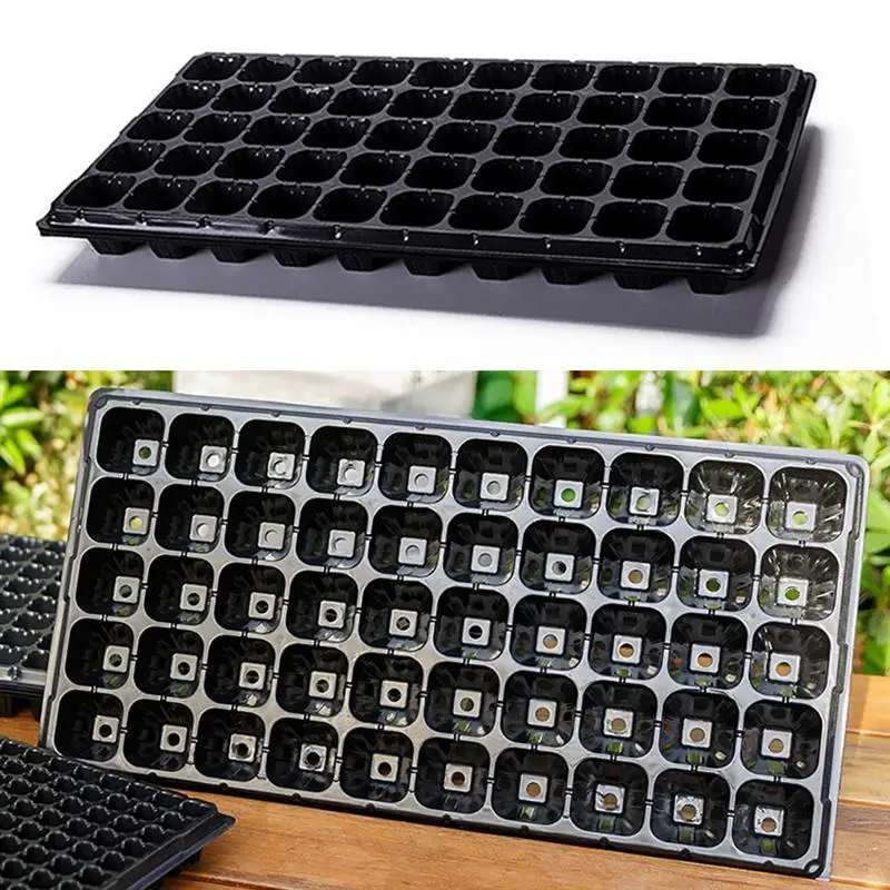 WINOMO 4pcs Nursery Seedling Plates PS Material 50 Holes Tree Seedling Plates Reusable Recyclable Nursery Sites (Black)