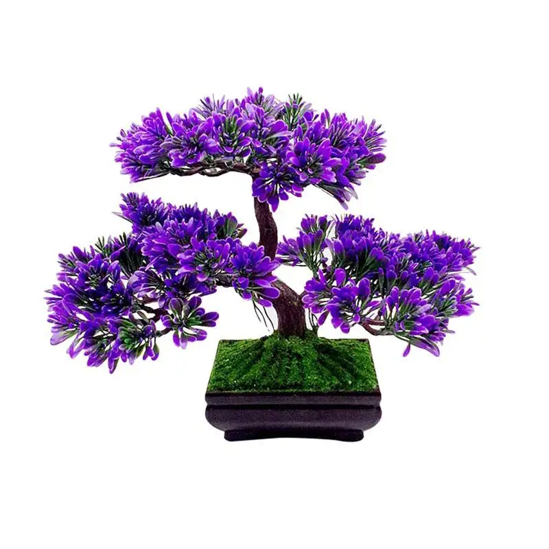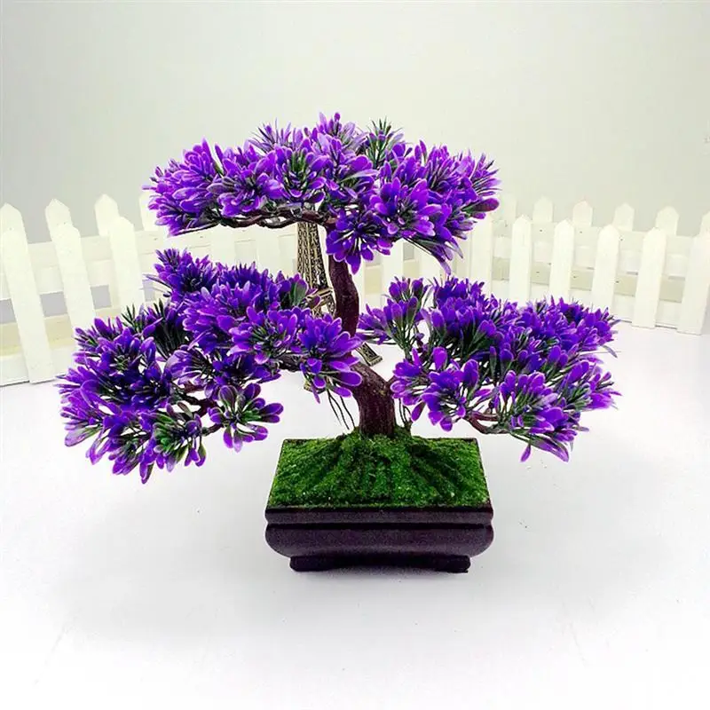 1 x Artificial Guest-Greeting Pine Bonsai Mini Simulation Tree Plant Home Decor Purple)