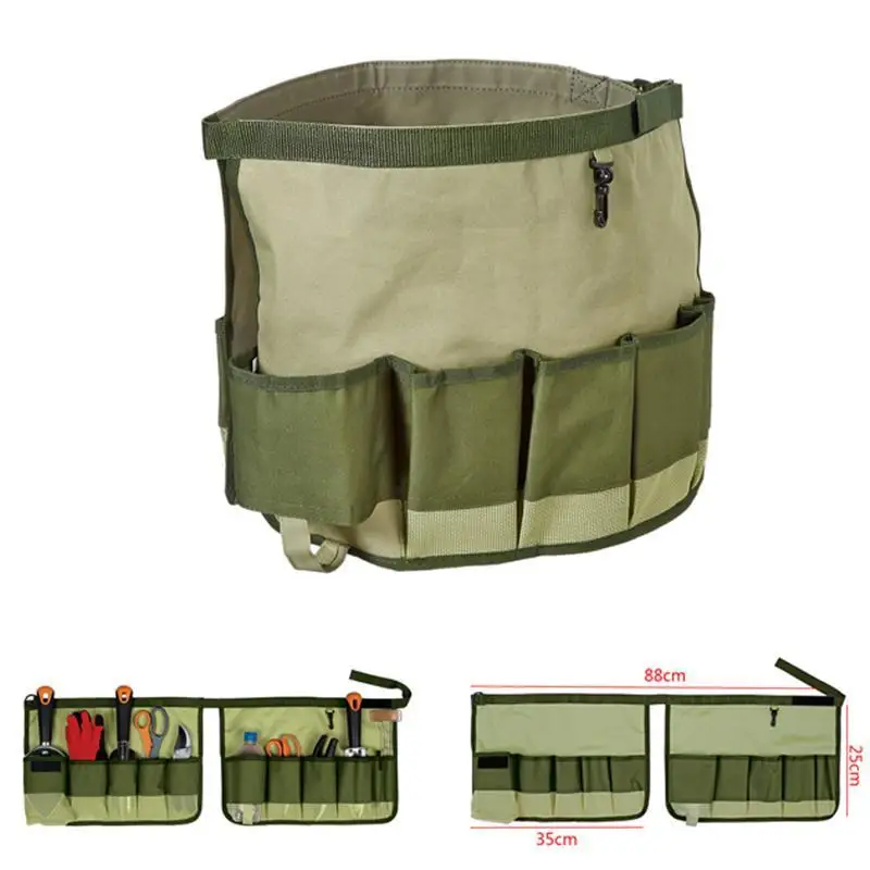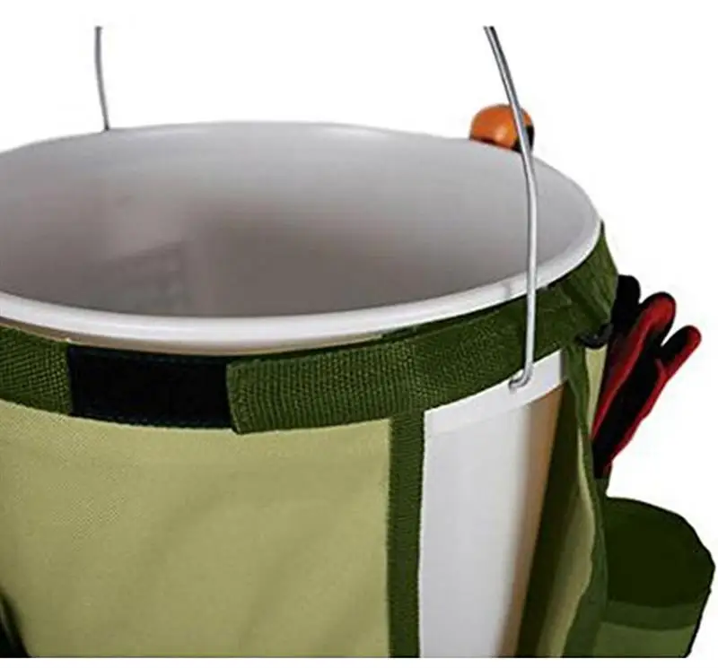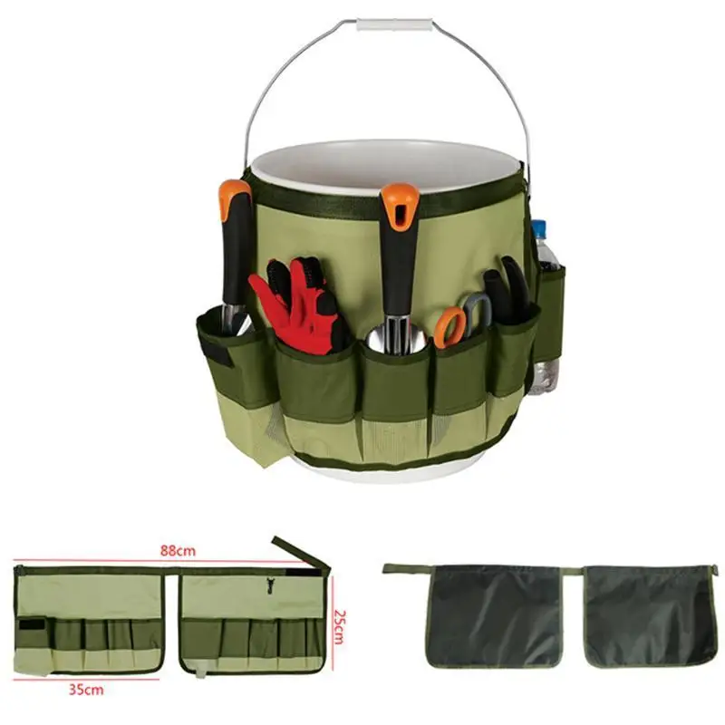 This item is a garden bucket tools bag with multiple pockets for holding various kinds of gardening tools. Made of high quality 600D oxford fabric exterior and 210D interior, it is durable and easy to clean with sturdy construction. It is a perfect accessory when you are working in garden.
